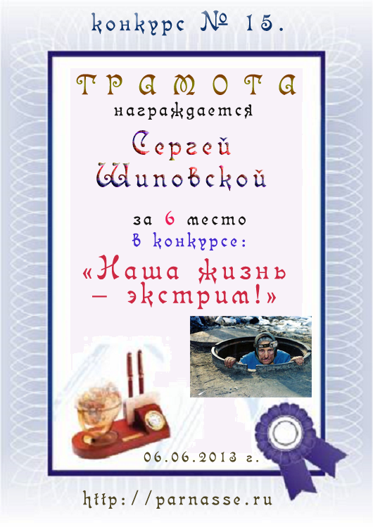 Грамота за 6 место в 15 конкурсе "Наша жизнь - экстрим"