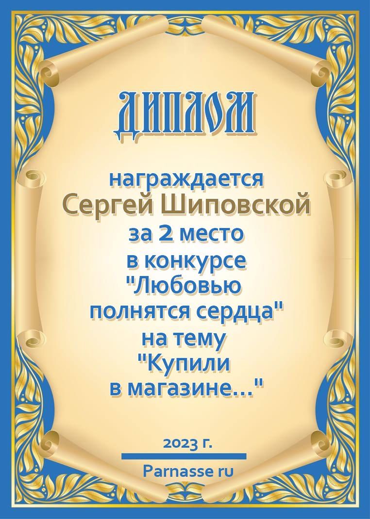 2 место в конкурсе "Любовью полнятся сердца" на тему "Купили в магазине...". Поздравляем!