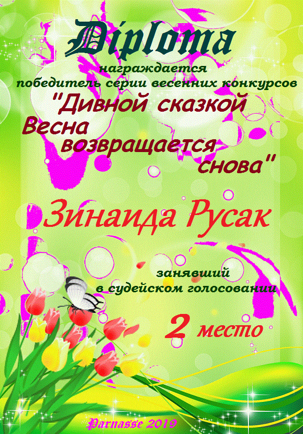 Второе место в серии весенних конкурсов "Дивной сказкой Весна возвращается снова", судейское голосование. Поздравляем с прекрасной победой!