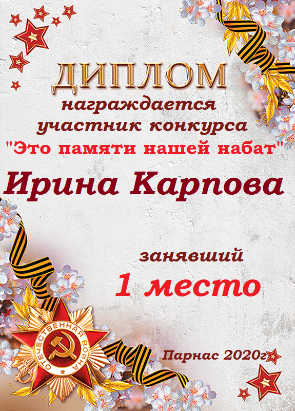 За победу в конкурсе "Это памяти нашей набат". Поздравляем с Днём Великой Победы!