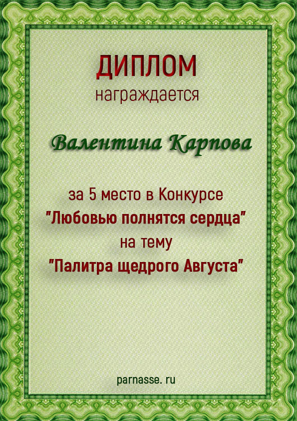 Диплом за 1 место в 144 конкурсе АКРОСТИХА (Альтернатива)! ПОЗДРАВЛЯЮ!
