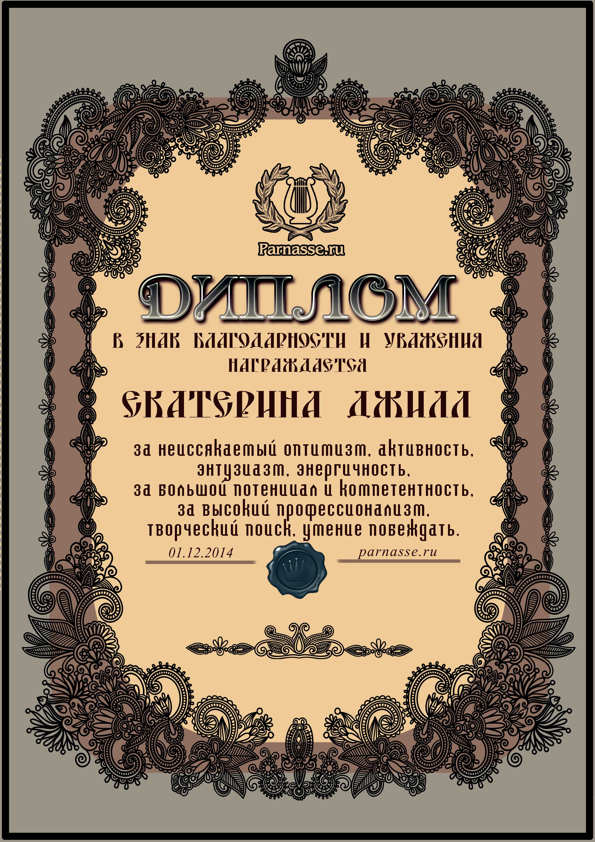 За неугасающую и неисчерпаемую творческую активность, постоянный контакт с Музой и признание сообществом "Парнасцев".От всей души желаем Вам, Екатерина, здоровья, любви, успехов, благополучия, удачи и творческого вдохновения!