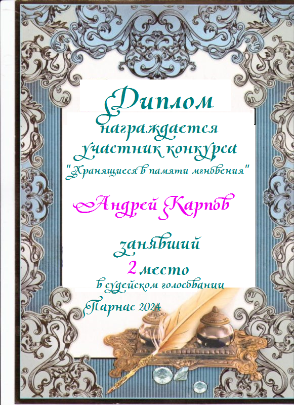 Второе место в судейском голосовании по итогам конкурса "Хранящиеся в памяти мгновения"