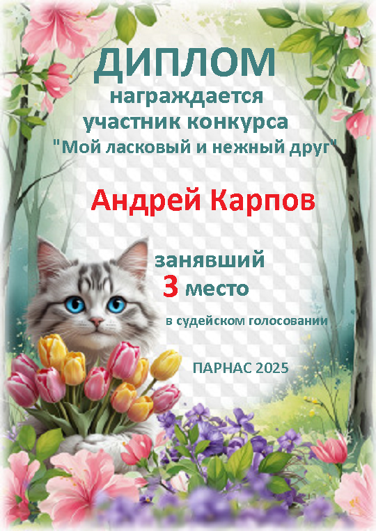 Третье место по итогам конкурса "Мой нежный и ласковый друг"