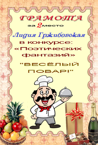 За участие в номинации "Поздравления в стихах: Поварам — хвала и честь". Успехов, удачи, везения!