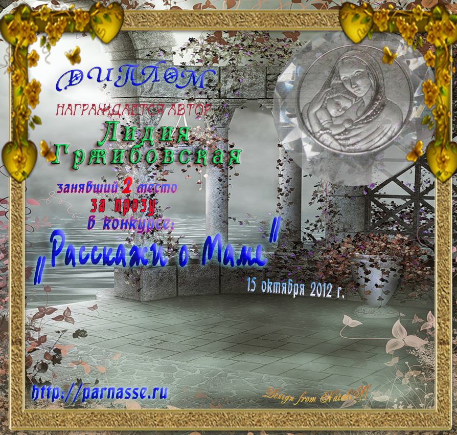 ДИПЛОМ ЗА ВТОРОЕ МЕСТО В КОНКУРСЕ "РАССКАЖИ О МАМЕ" Проза