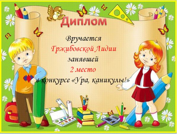 ДИПЛОМ ЗА ВТОРОЕ МЕСТО В КОНКУРСЕ "Ура каникулы!"