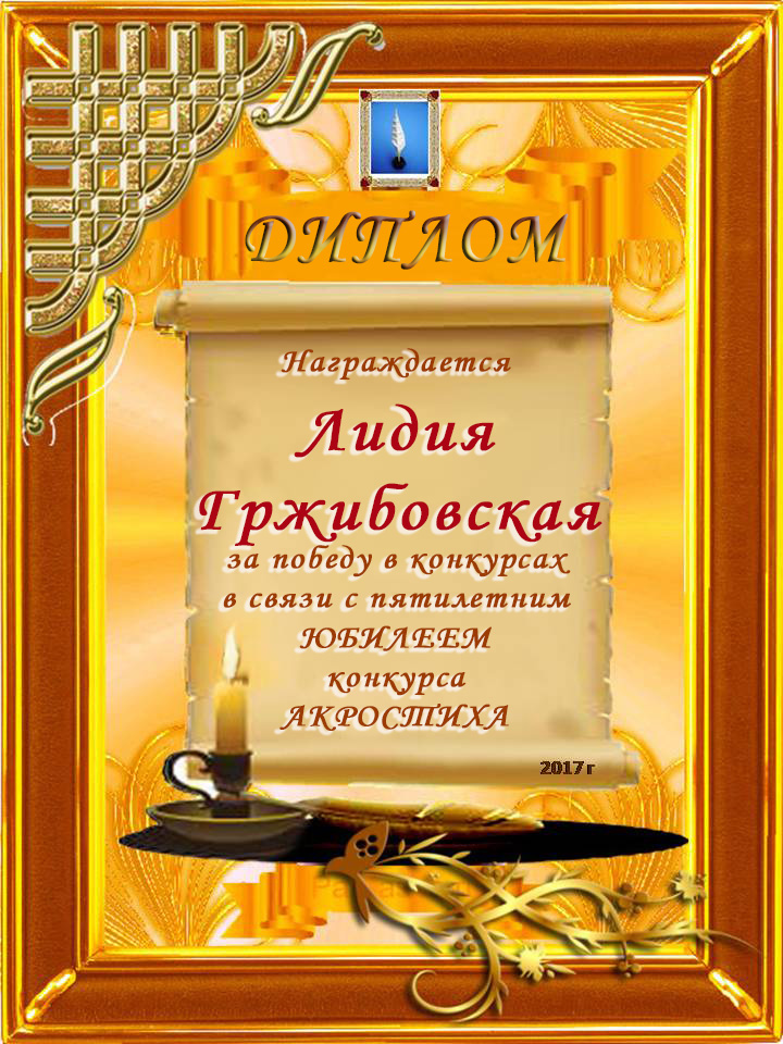 Диплом победителю в конкурсах Акростиха в связи с пятилетием конкурса Акростиха!