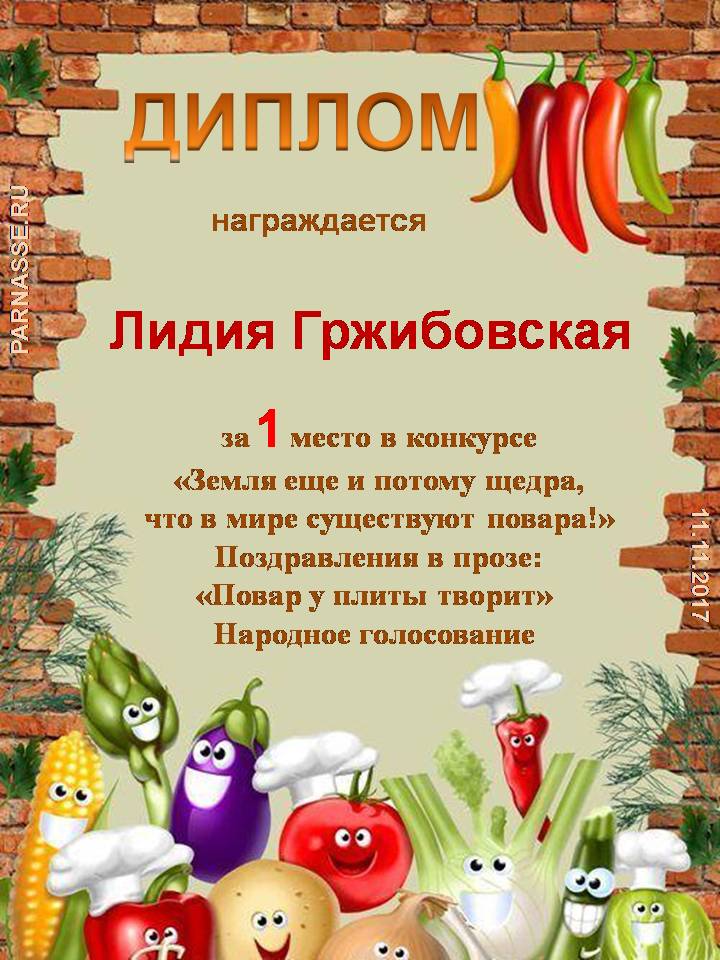 Поздравляем с 1 местом! Номинация: Поздравления в прозе: Повар у плиты творит - народное голосование
