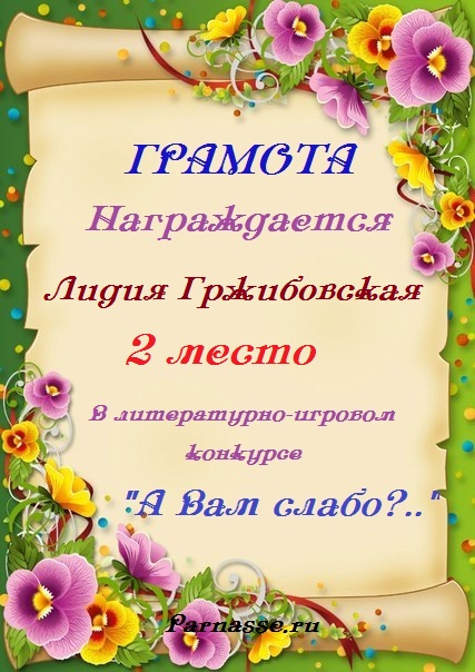 Номинация "Лучшее стихотворное поздравление Парнасу". Уважаемая Лидия!