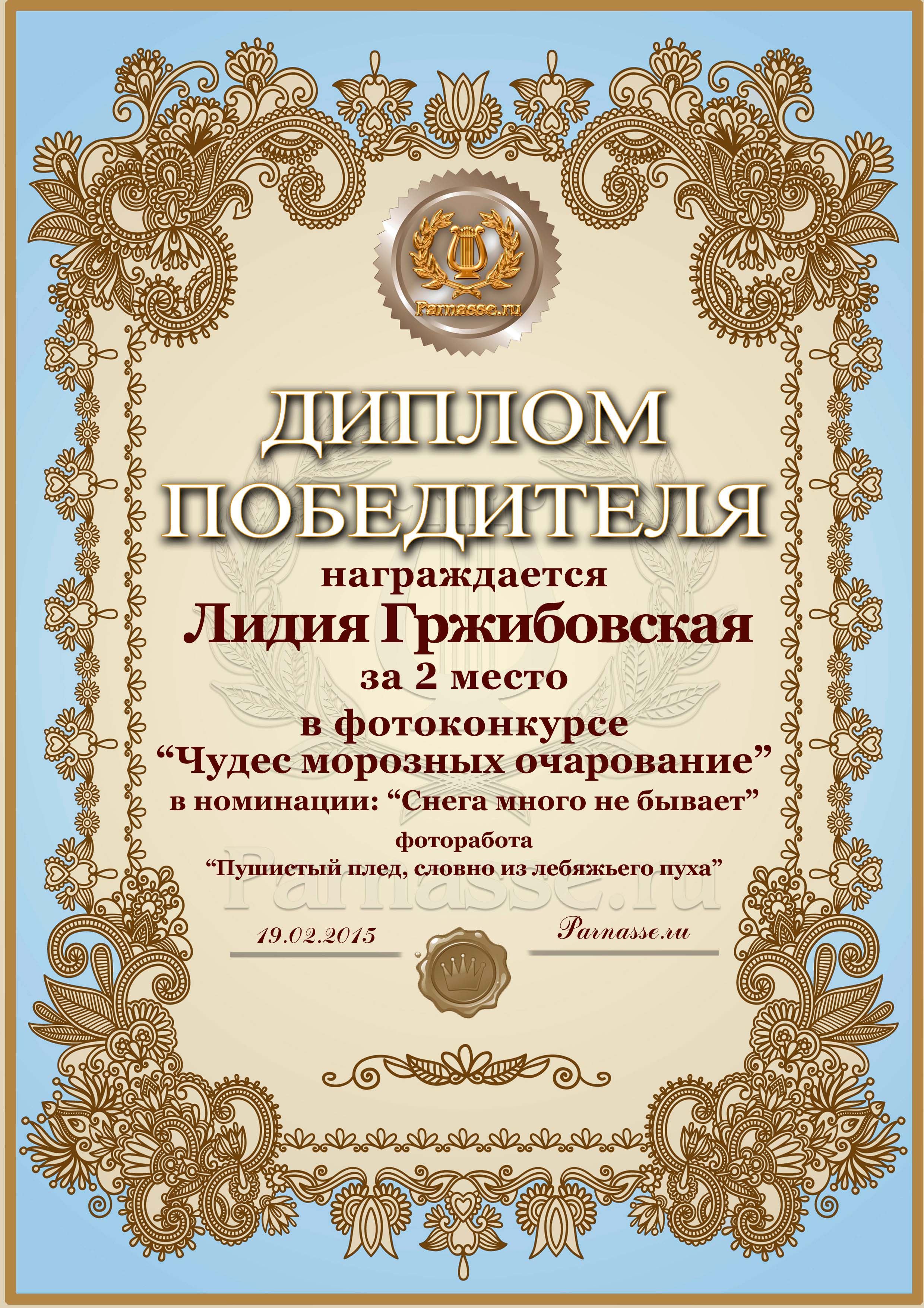 Диплом за 2 место в фотоконкурсе "Чудес морозных очарование"