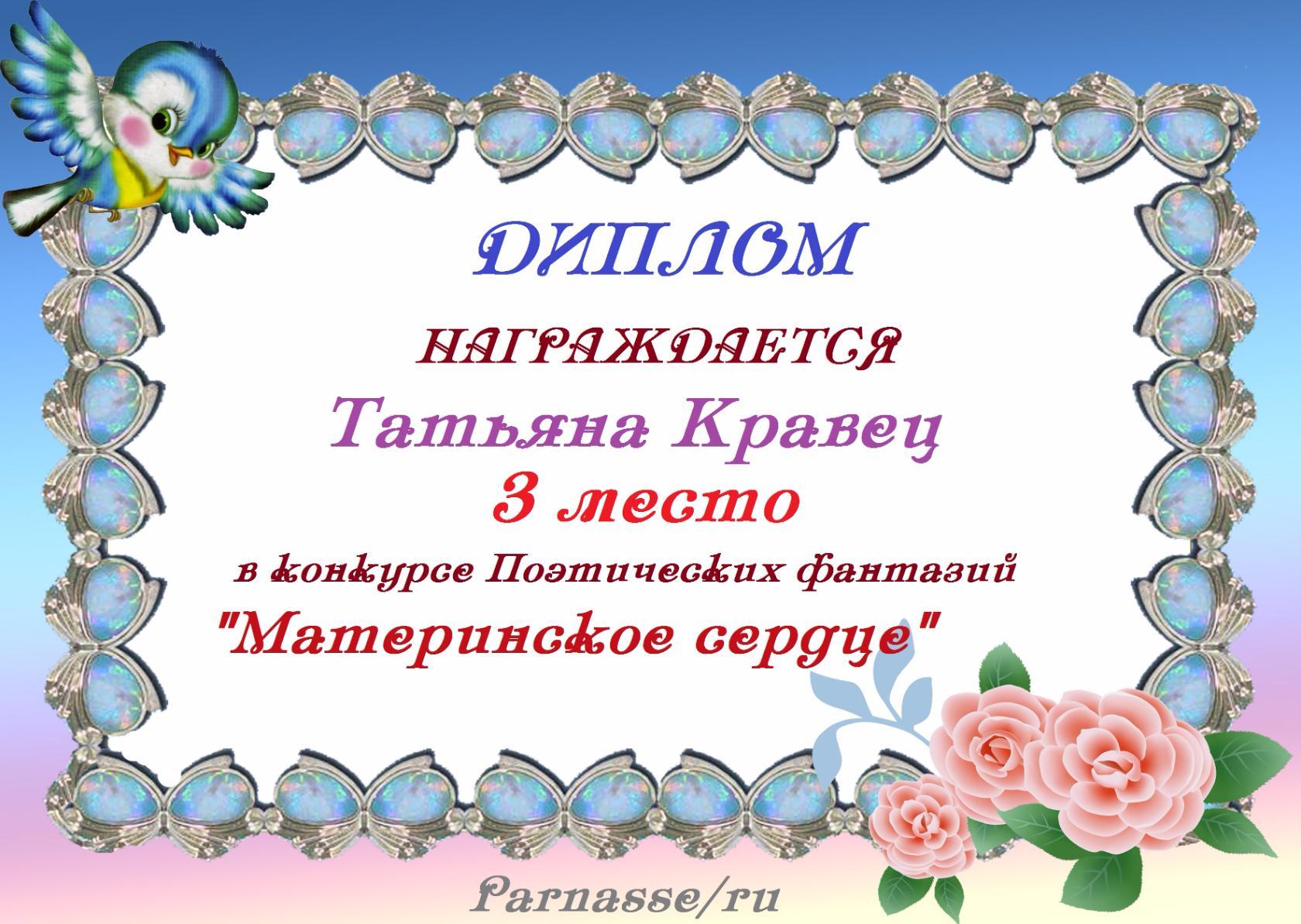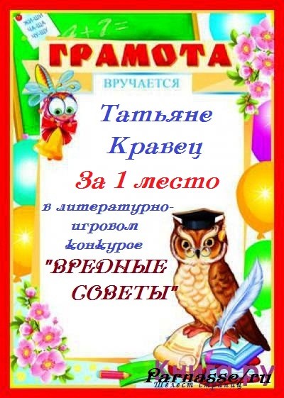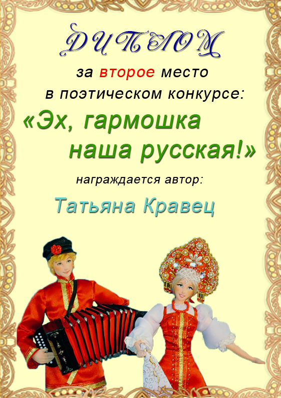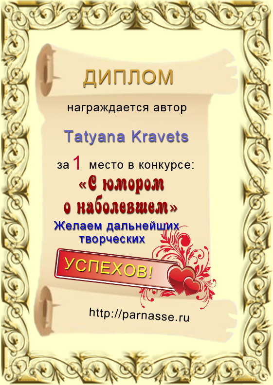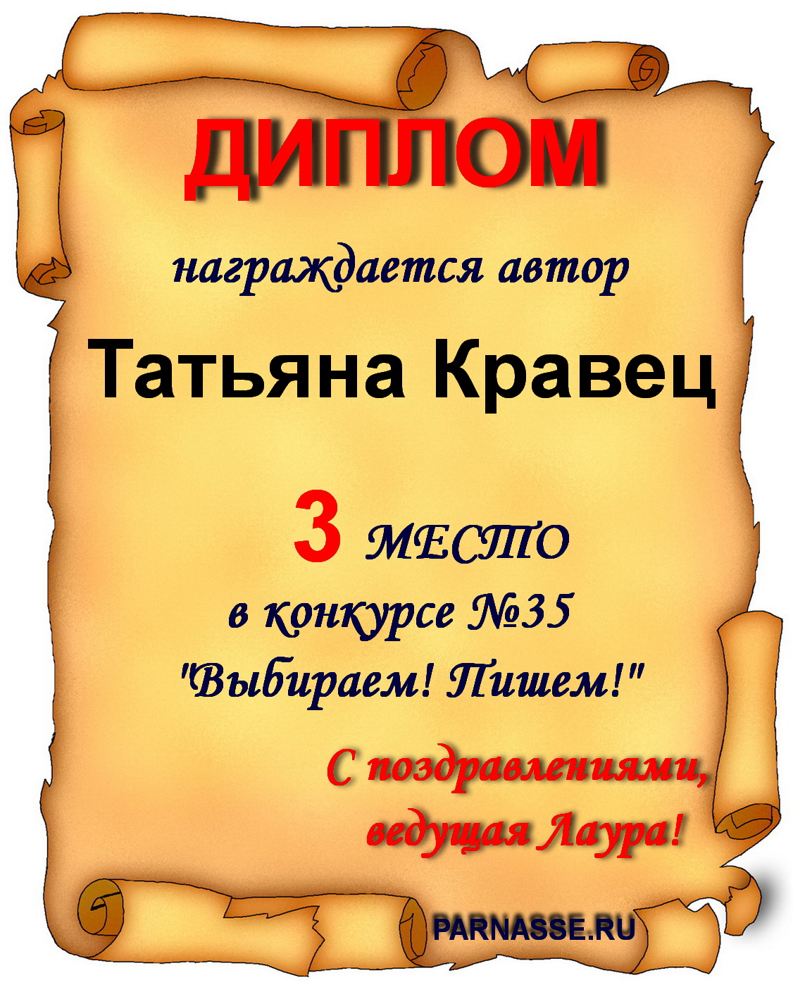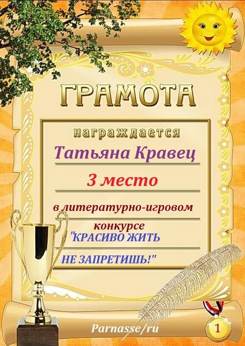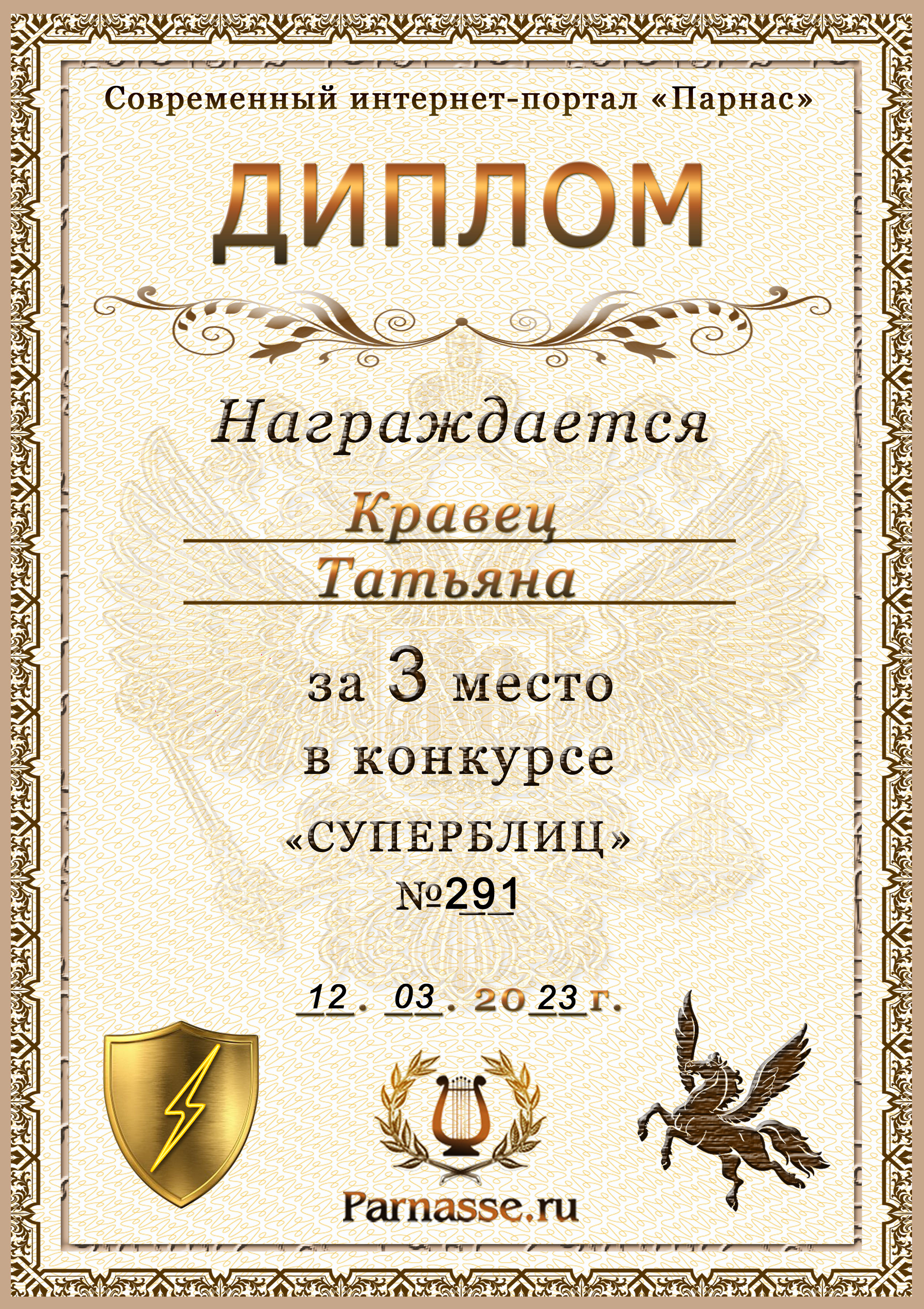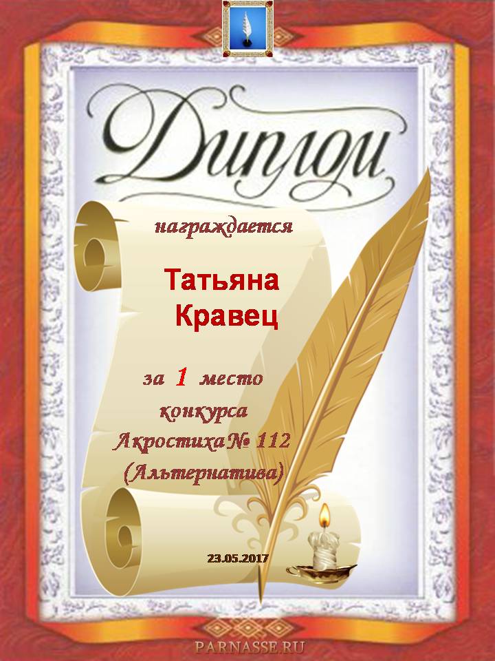 Диплом за 1 место в 112 конкурсе АКРОСТИХА (Альтернатива)! ПОЗДРАВЛЯЮ!