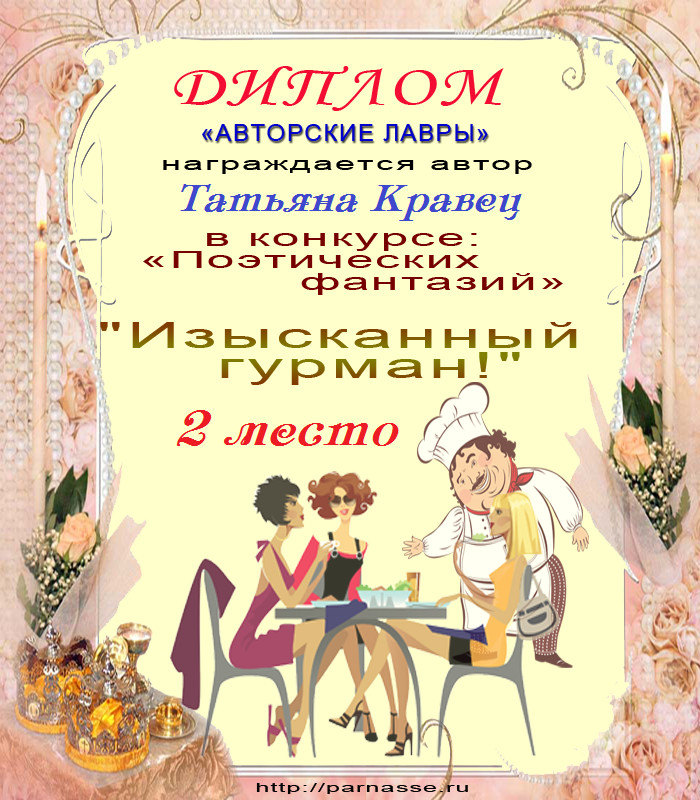 Победителю конкурса "Изысканный гурман!"в номинации "Авторские лавры"за 2 место.
