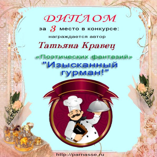 Победителю конкурса "Изысканный гурман!"в номинации "Авторские лавры"3 место.