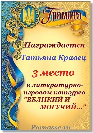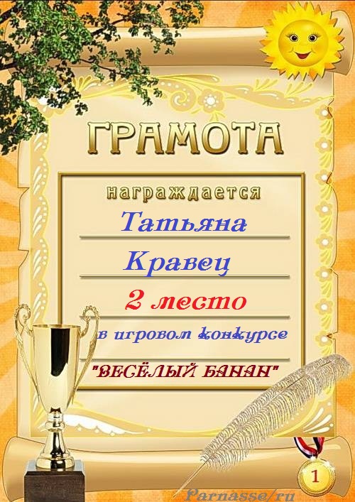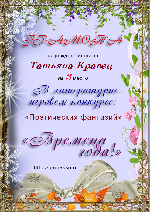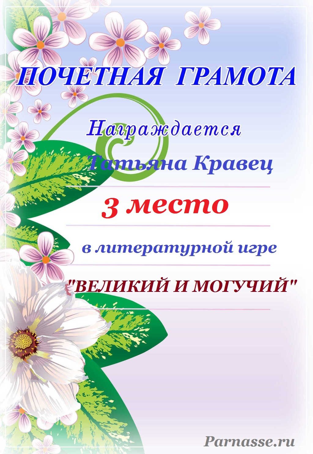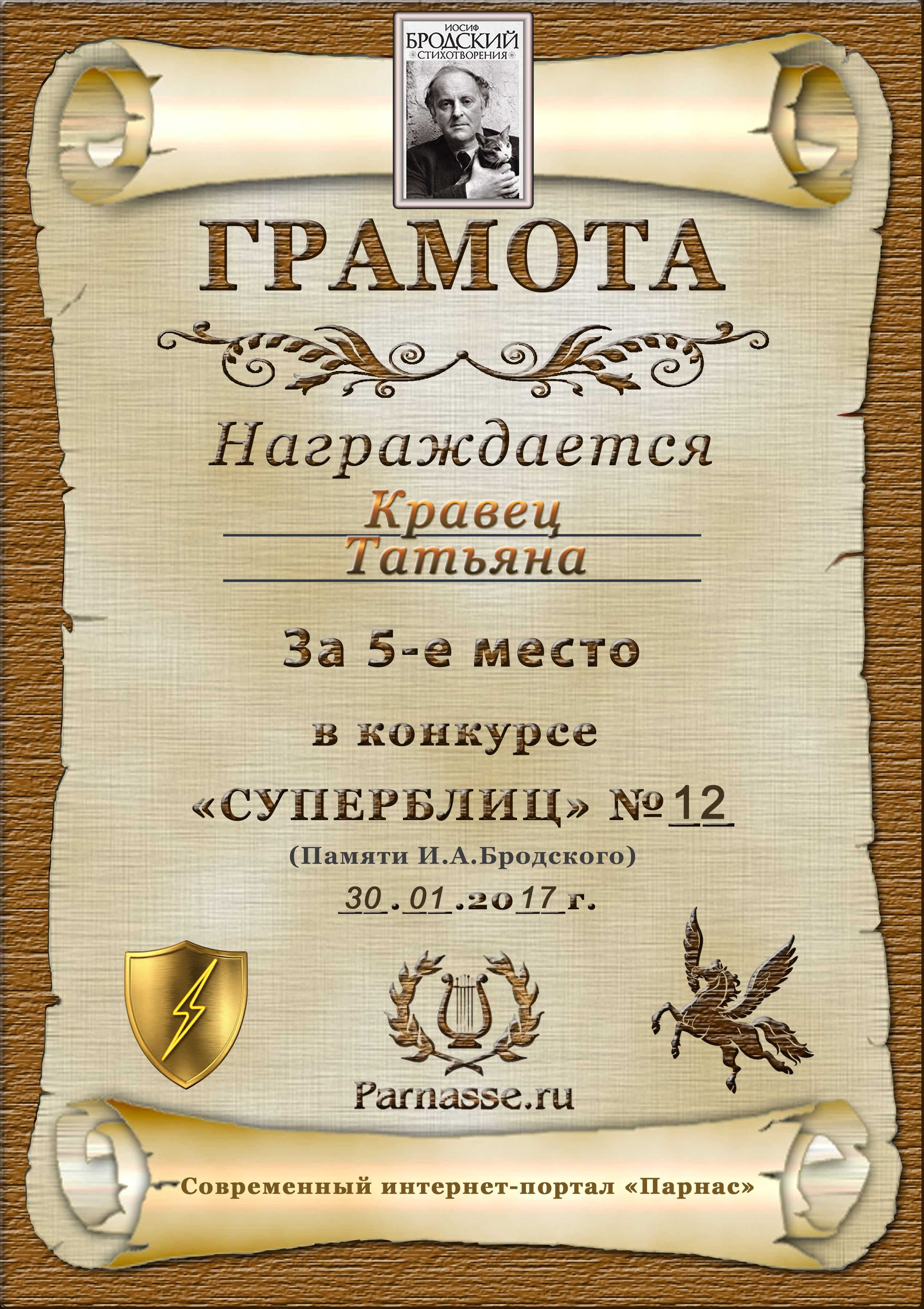 Грамота за 4 место в 111 конкурсе АКРОСТИХА (Альтернатива)! ПОЗДРАВЛЯЮ!