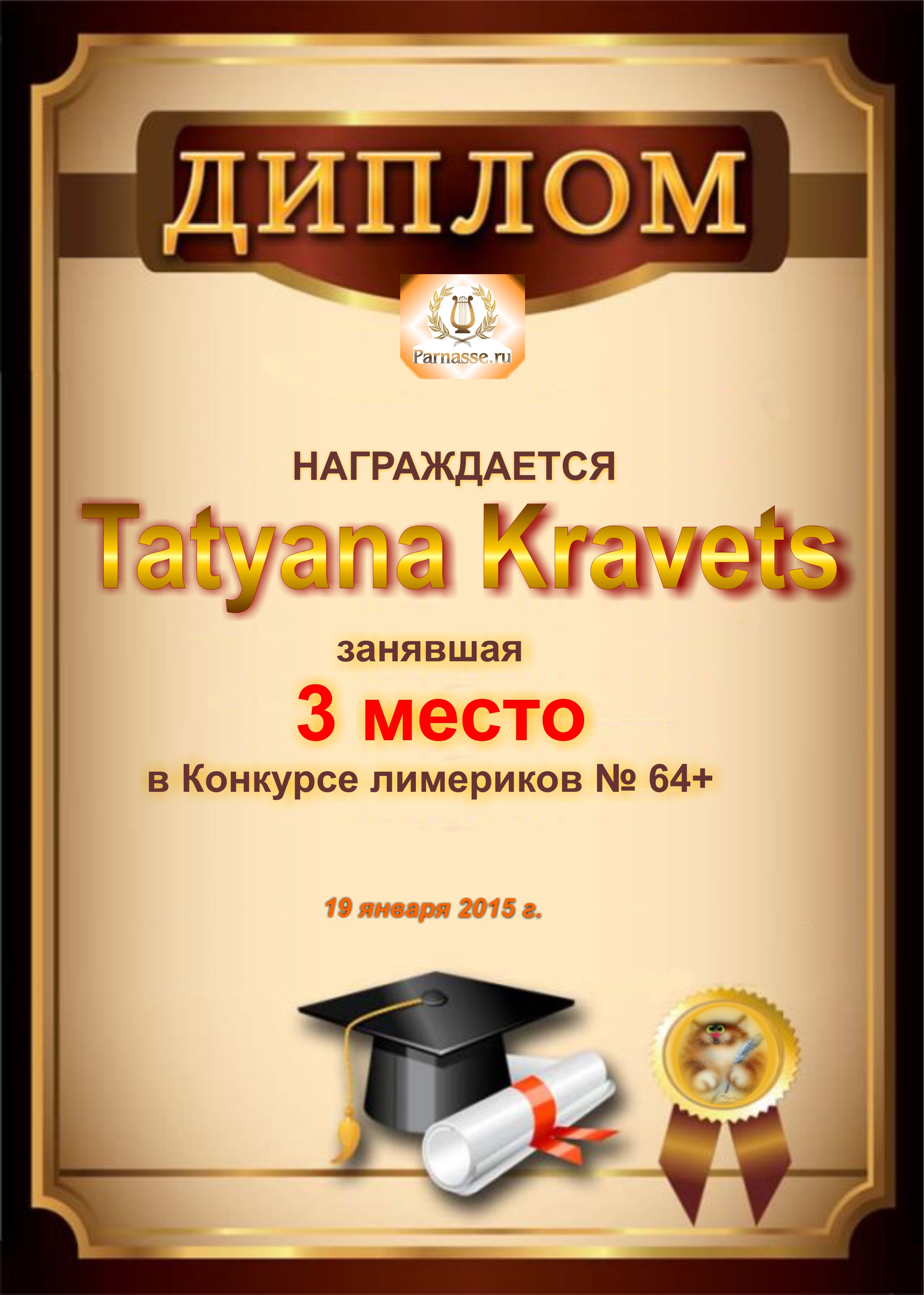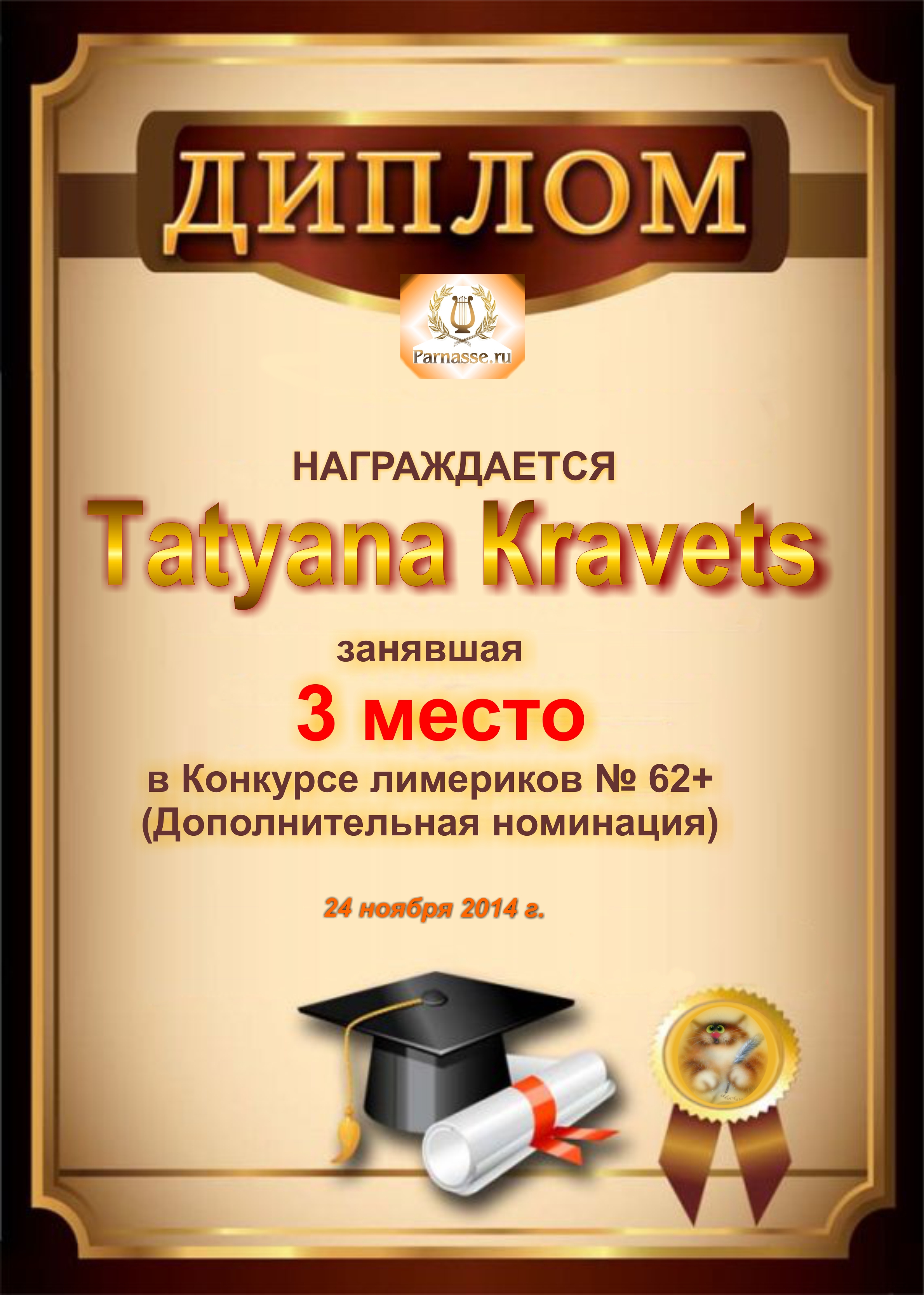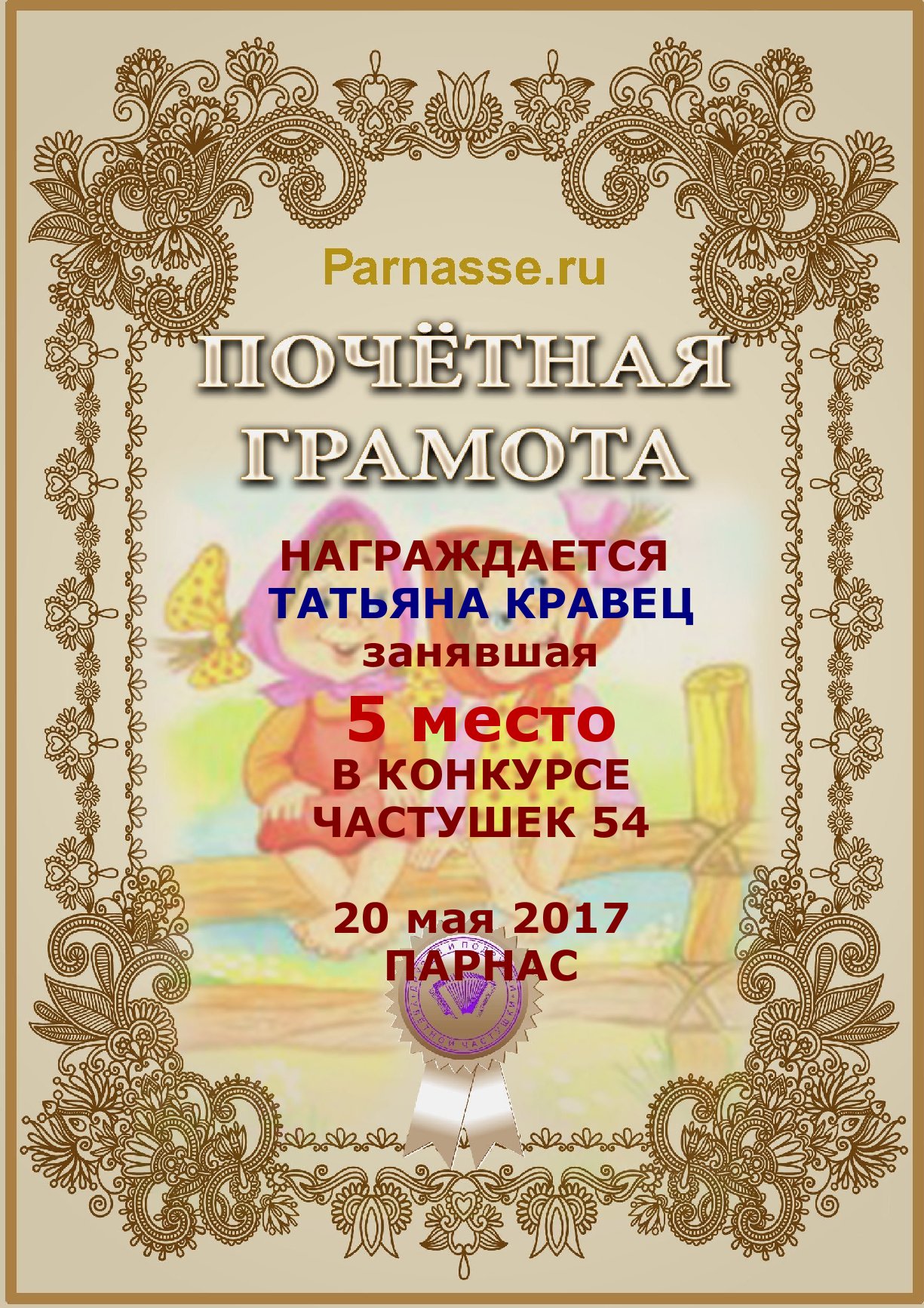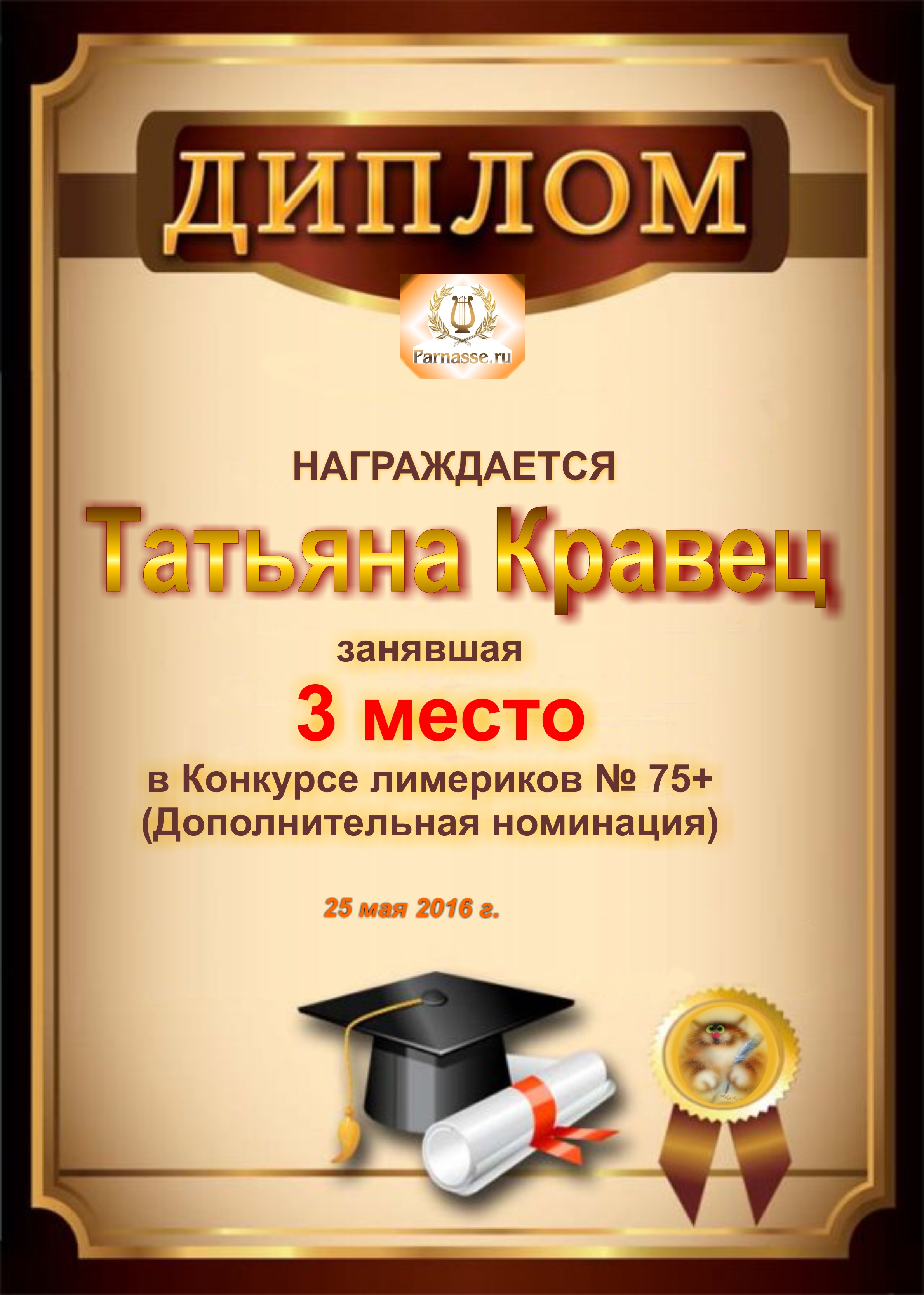Похвальная грамота за 5 место и активное участие в конкурсе лимериков № 75+ (25.05.2016 г.)