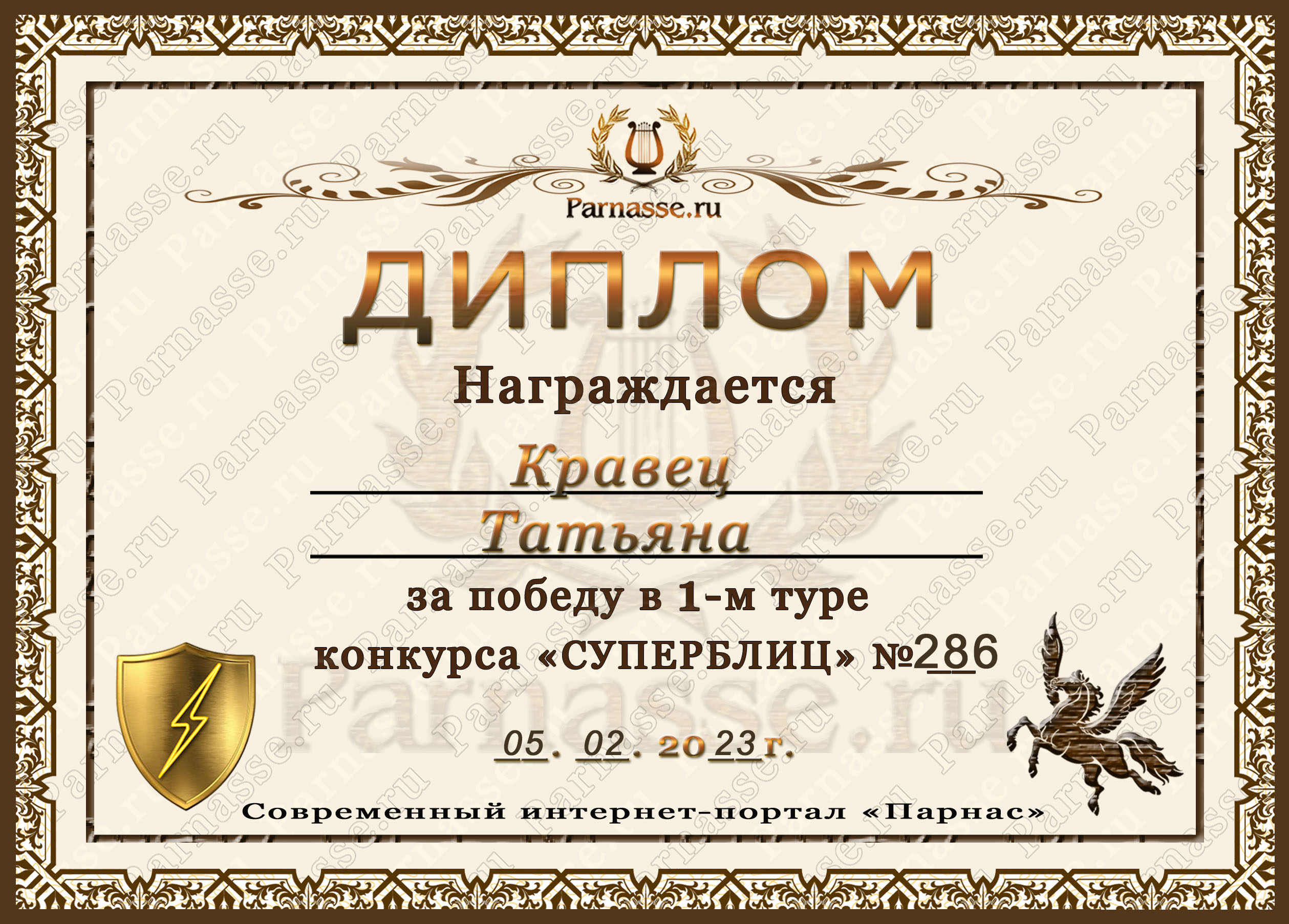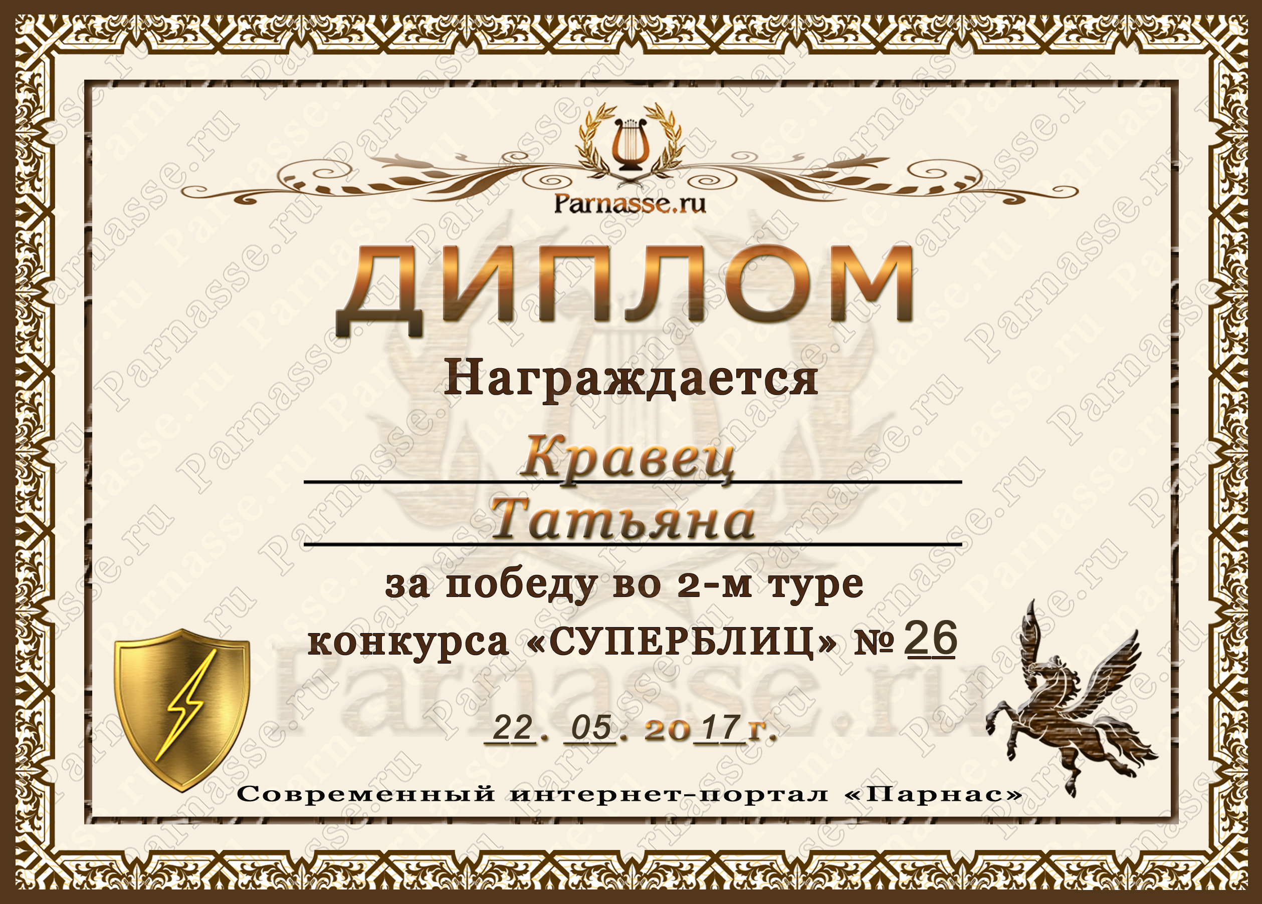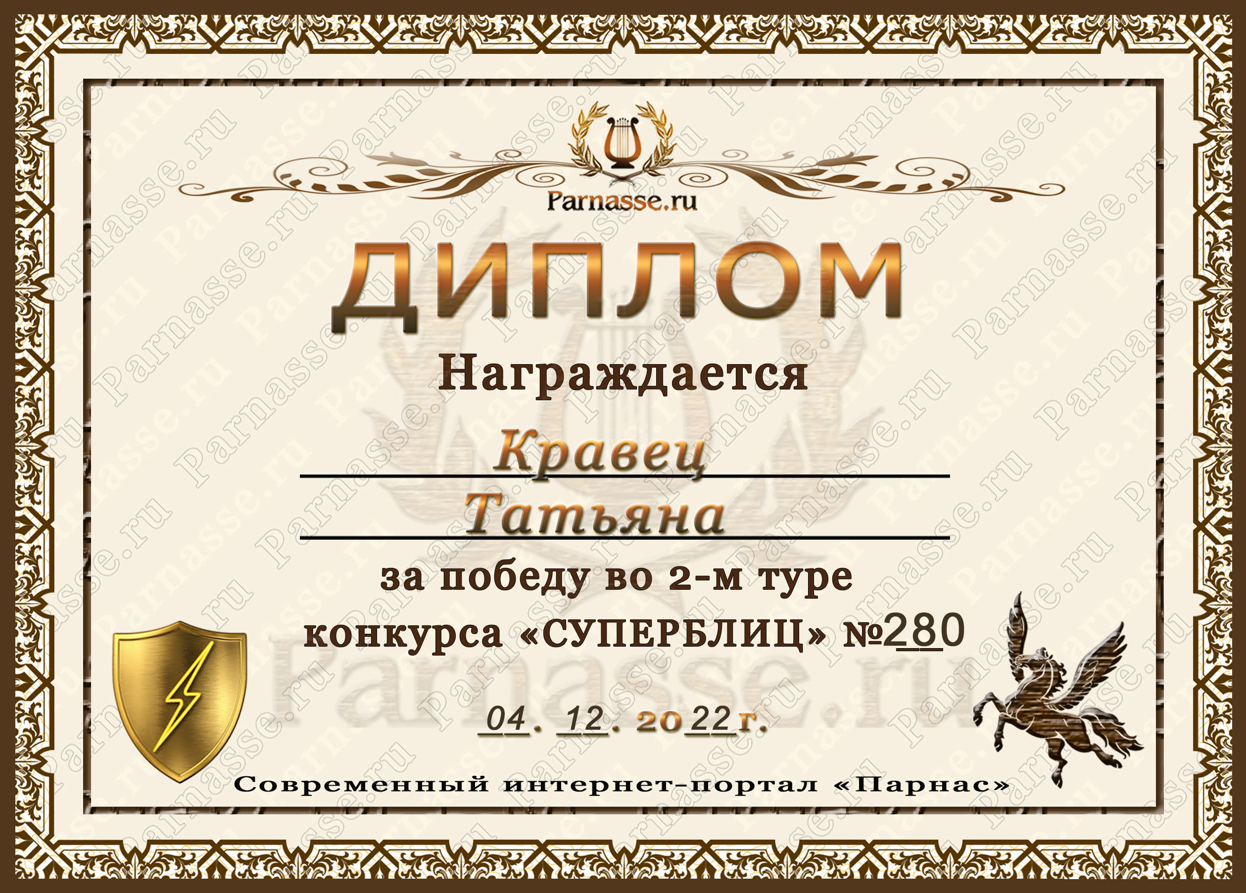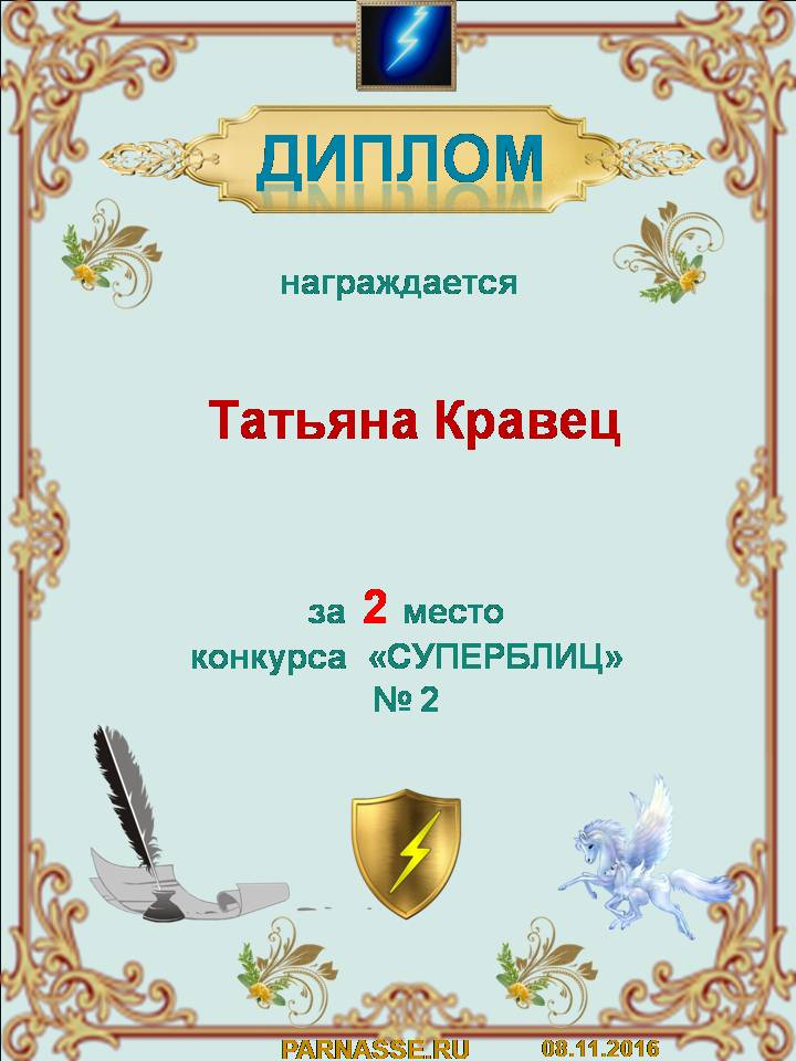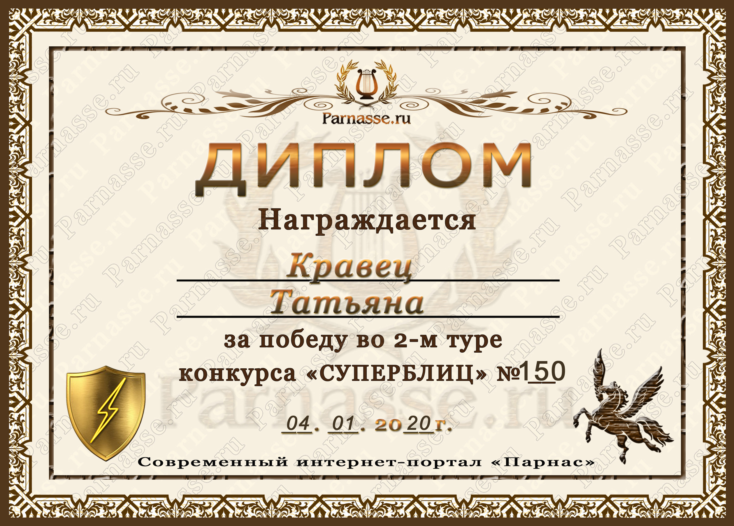 Диплом за победу во 2 туре в конкурсе СУПЕРБЛИЦА № 150! ПОЗДРАВЛЯЮ!