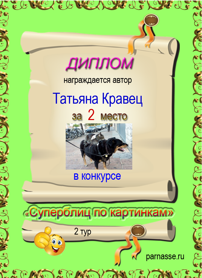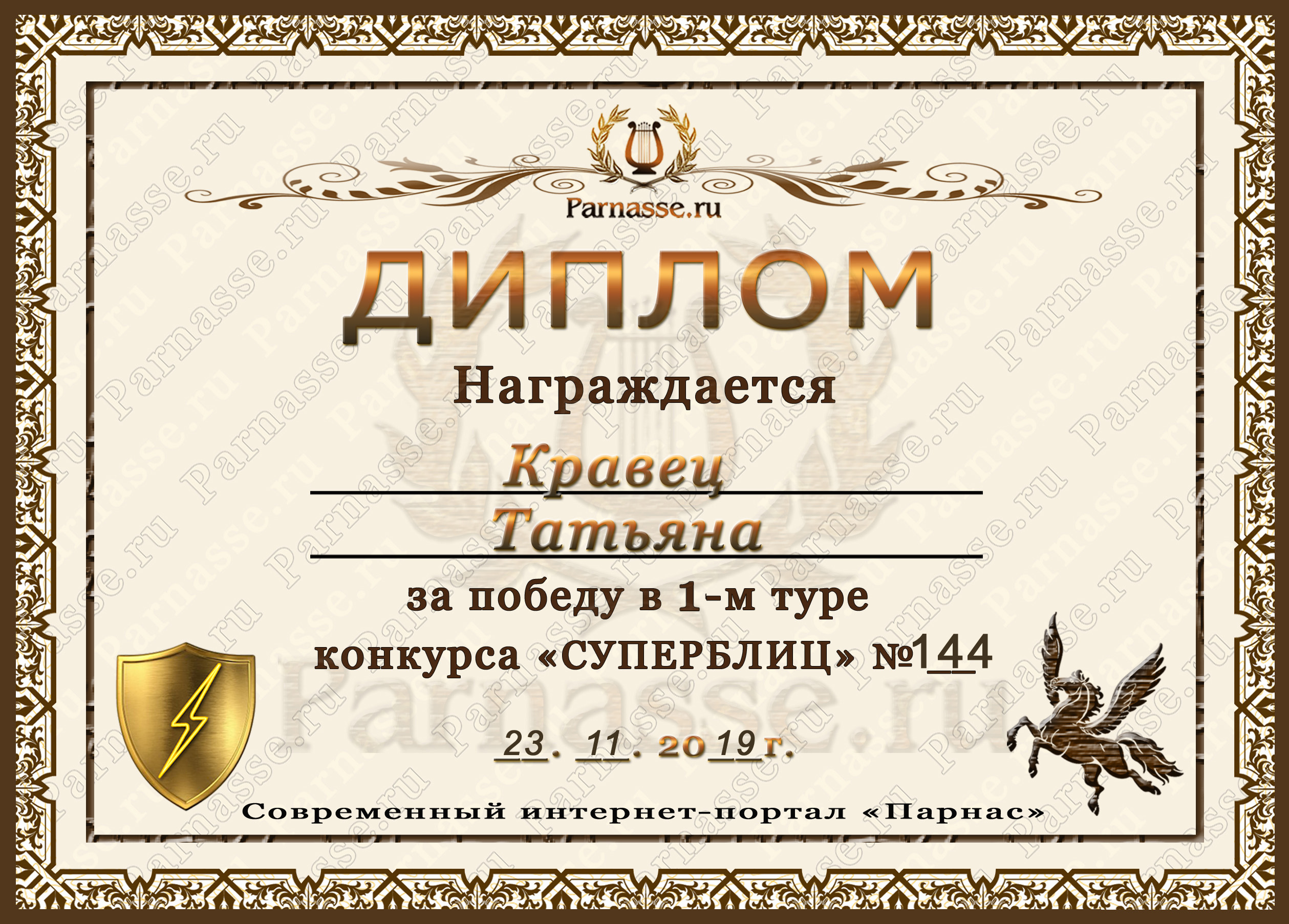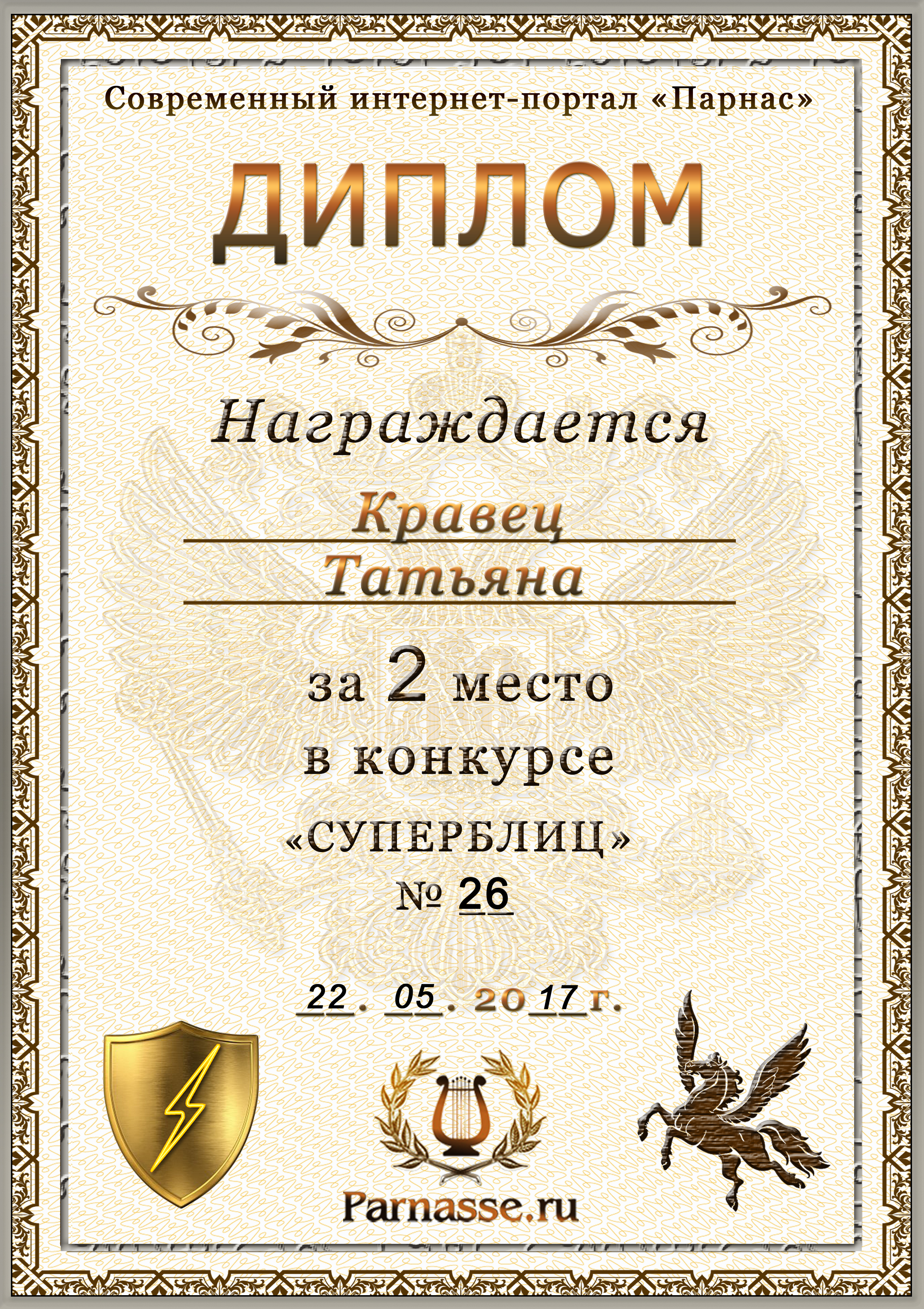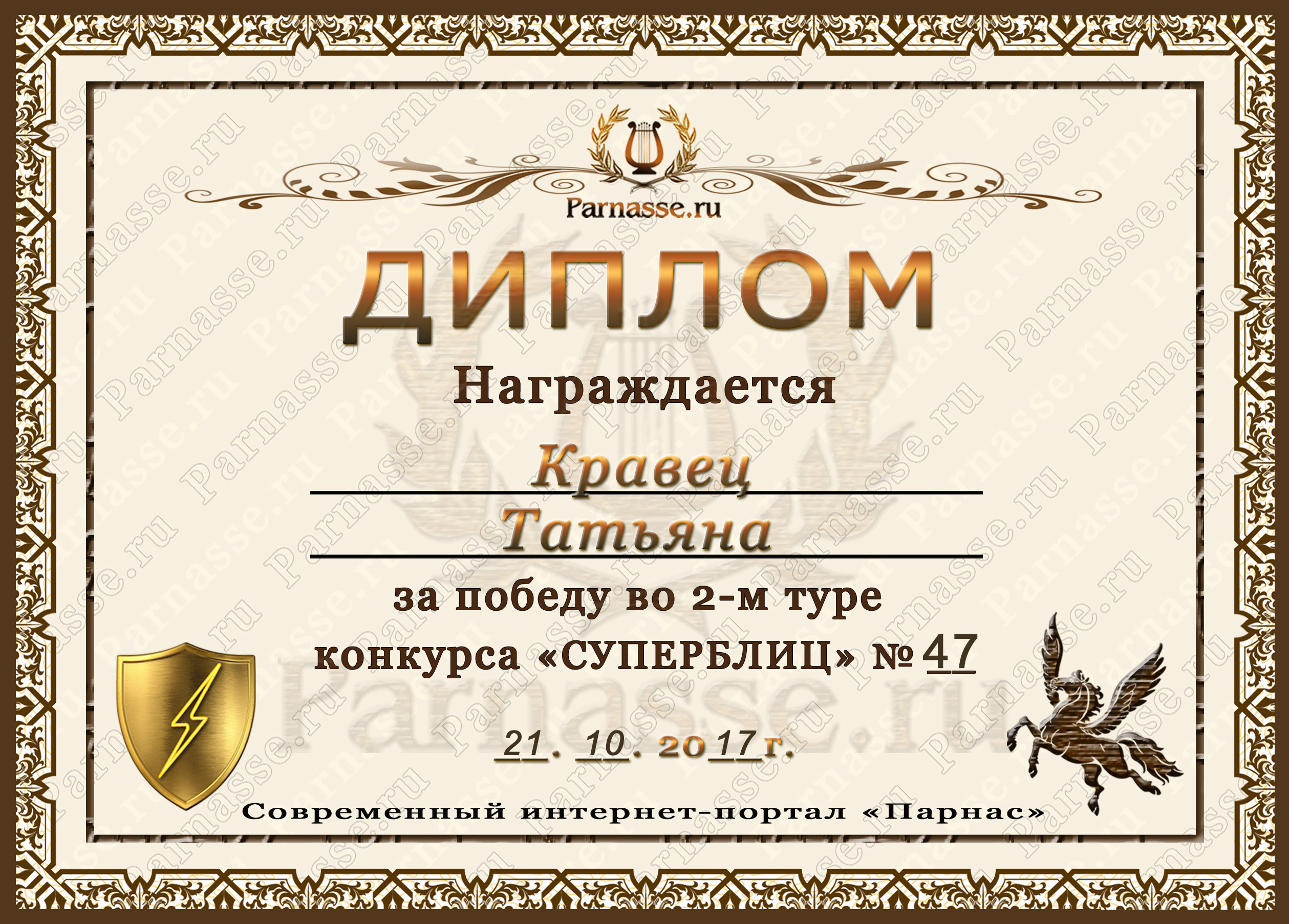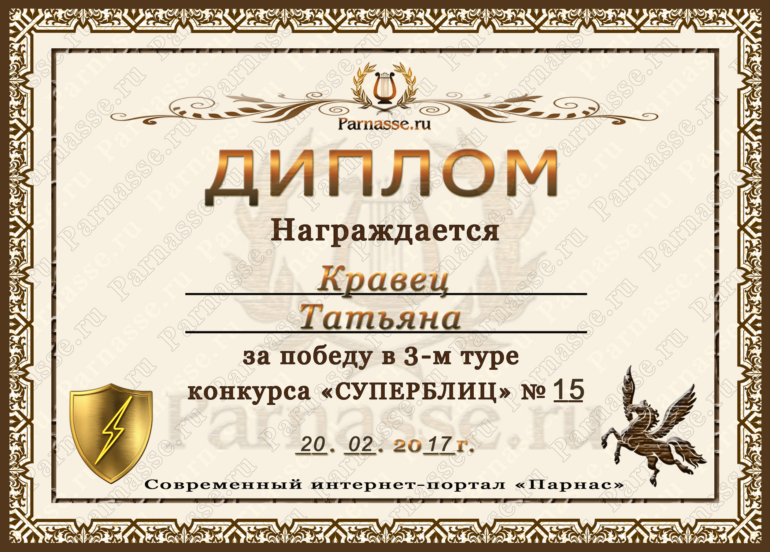 Диплом за победу во 2 туре в конкурсе СУПЕРБЛИЦА № 150! ПОЗДРАВЛЯЮ!