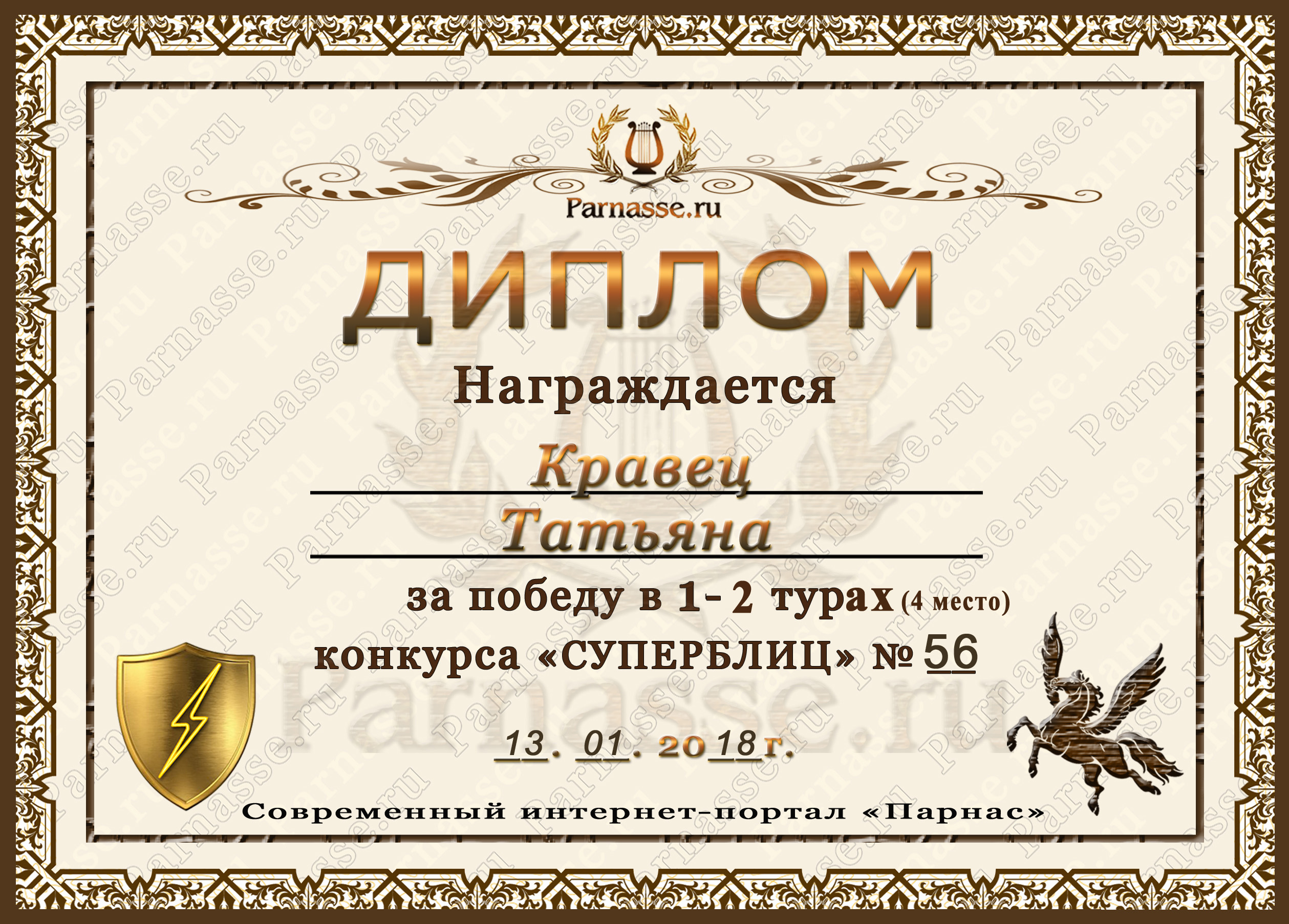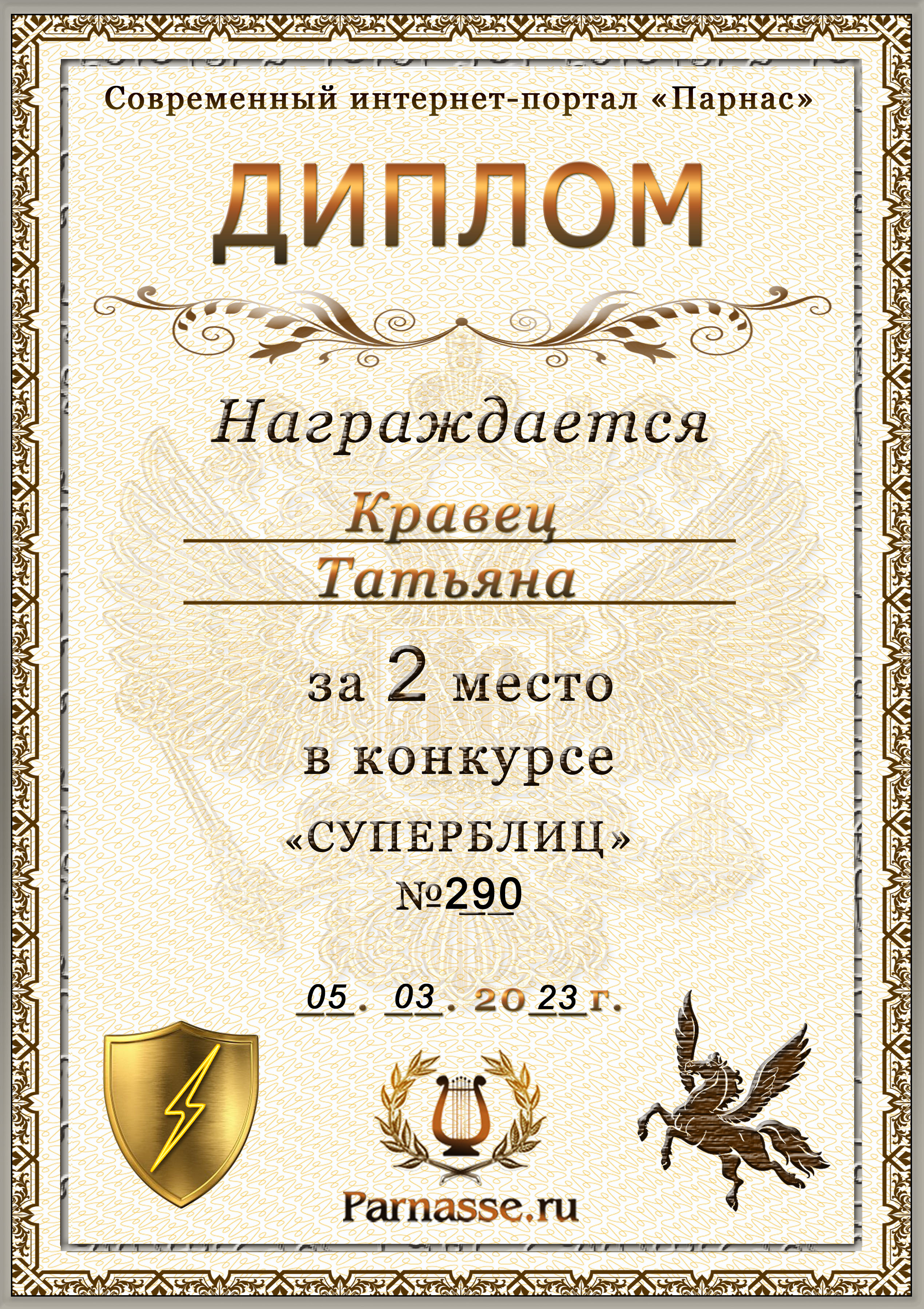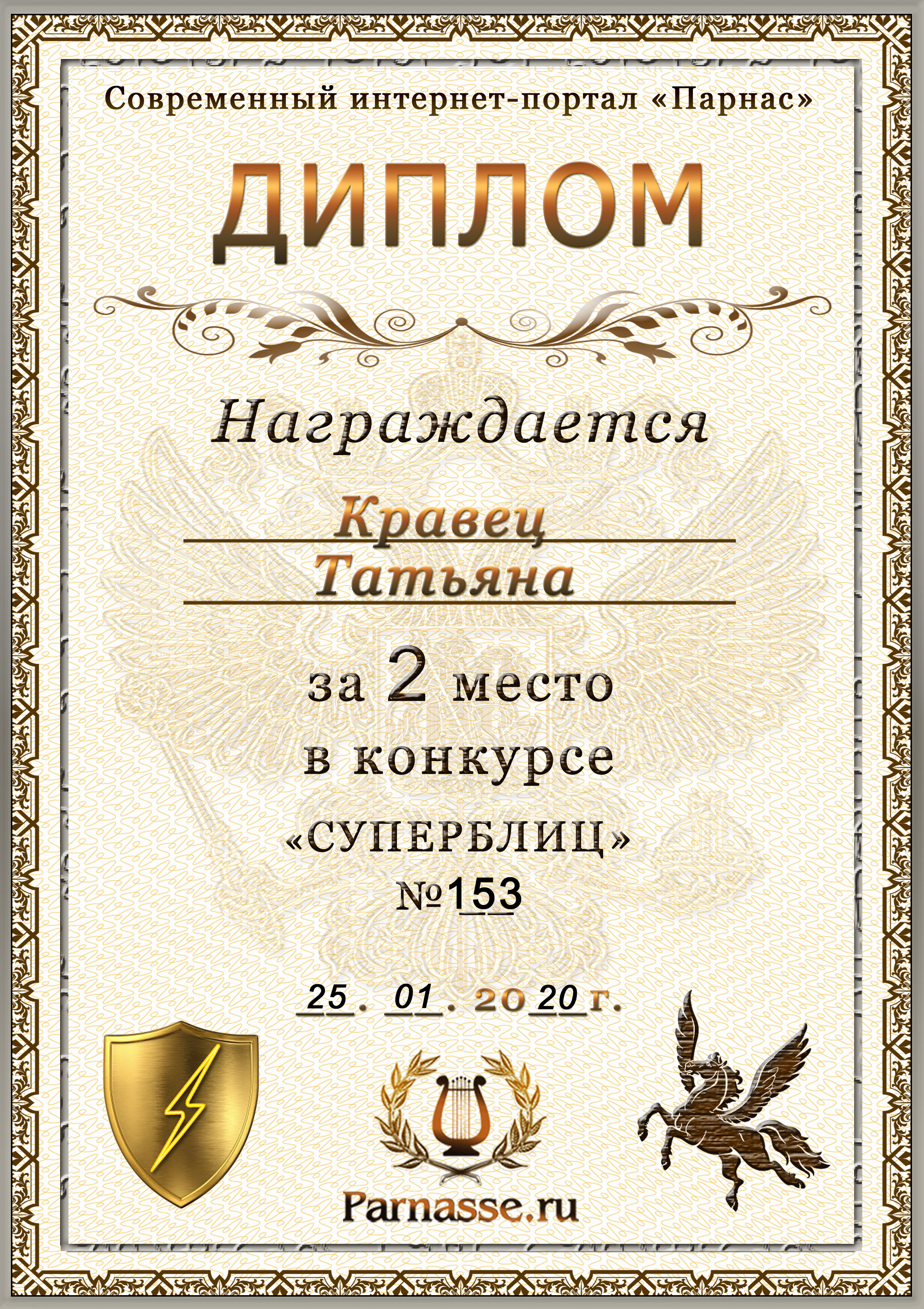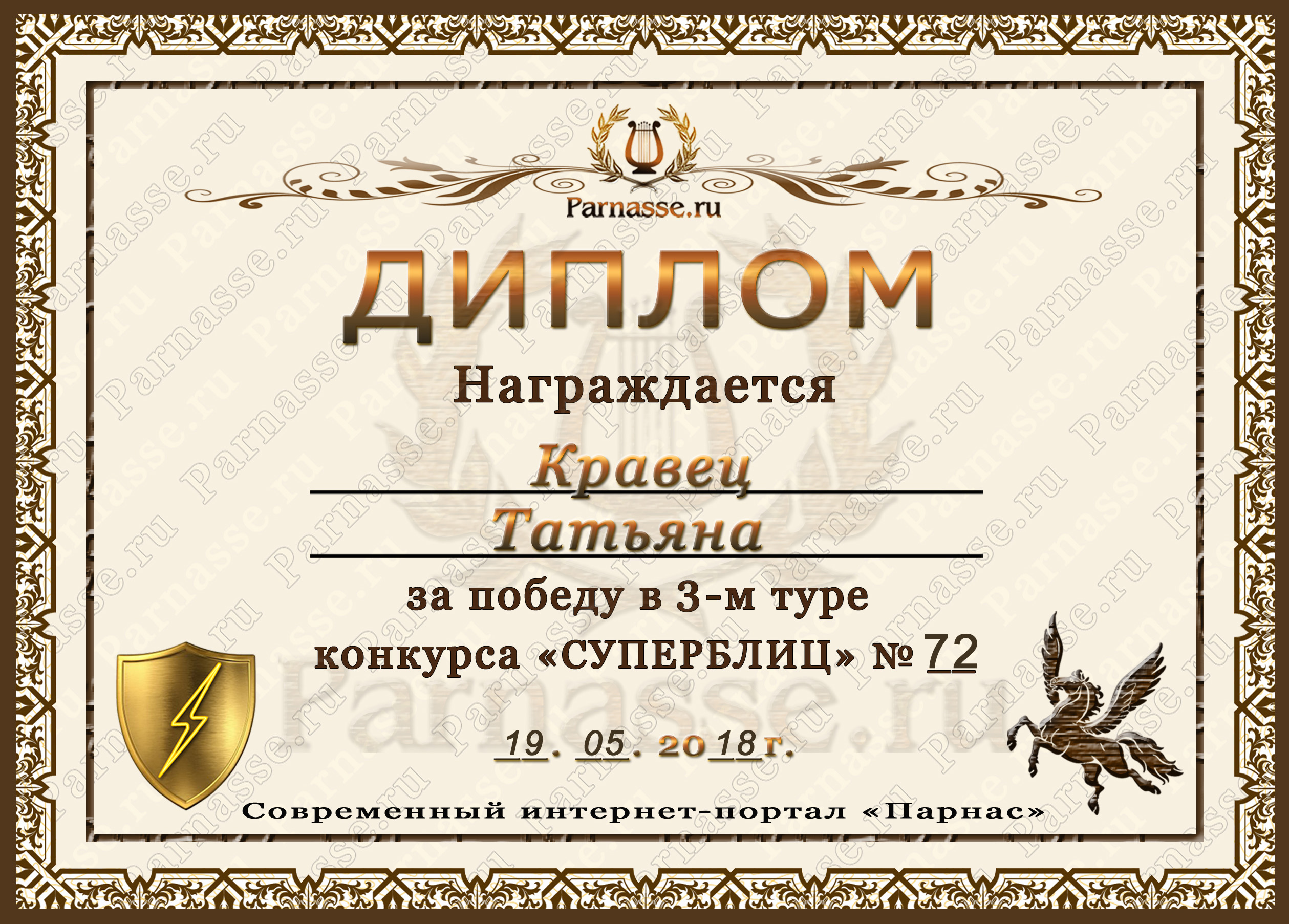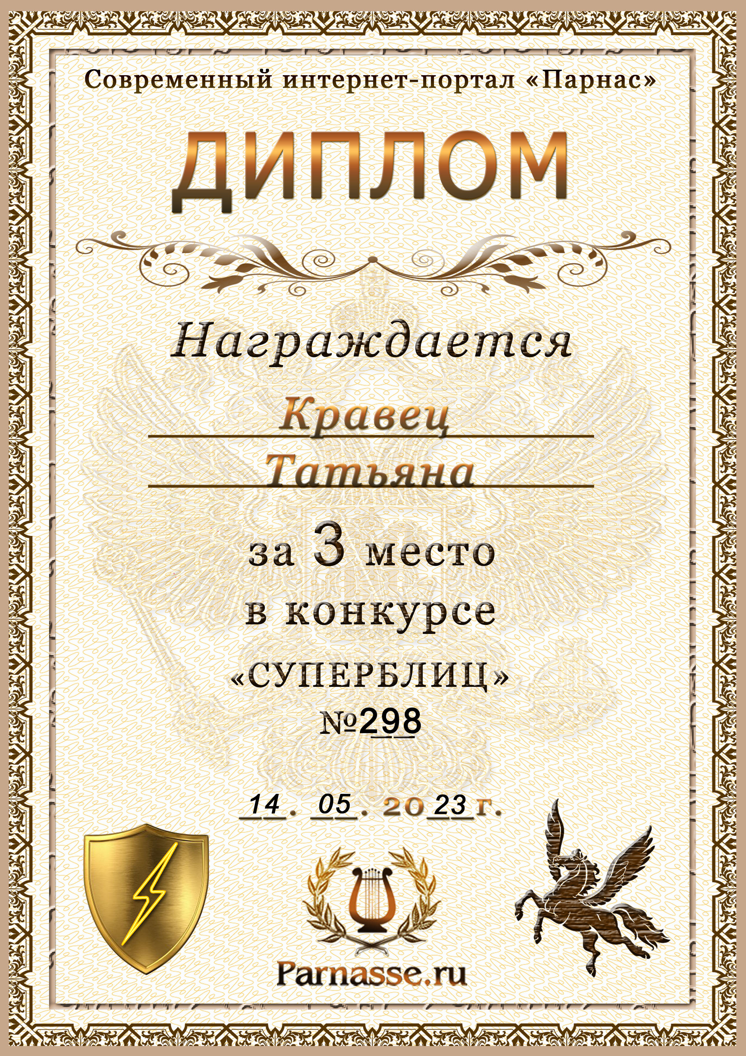 Диплом за победу во 2 туре в конкурсе СУПЕРБЛИЦА № 150! ПОЗДРАВЛЯЮ!