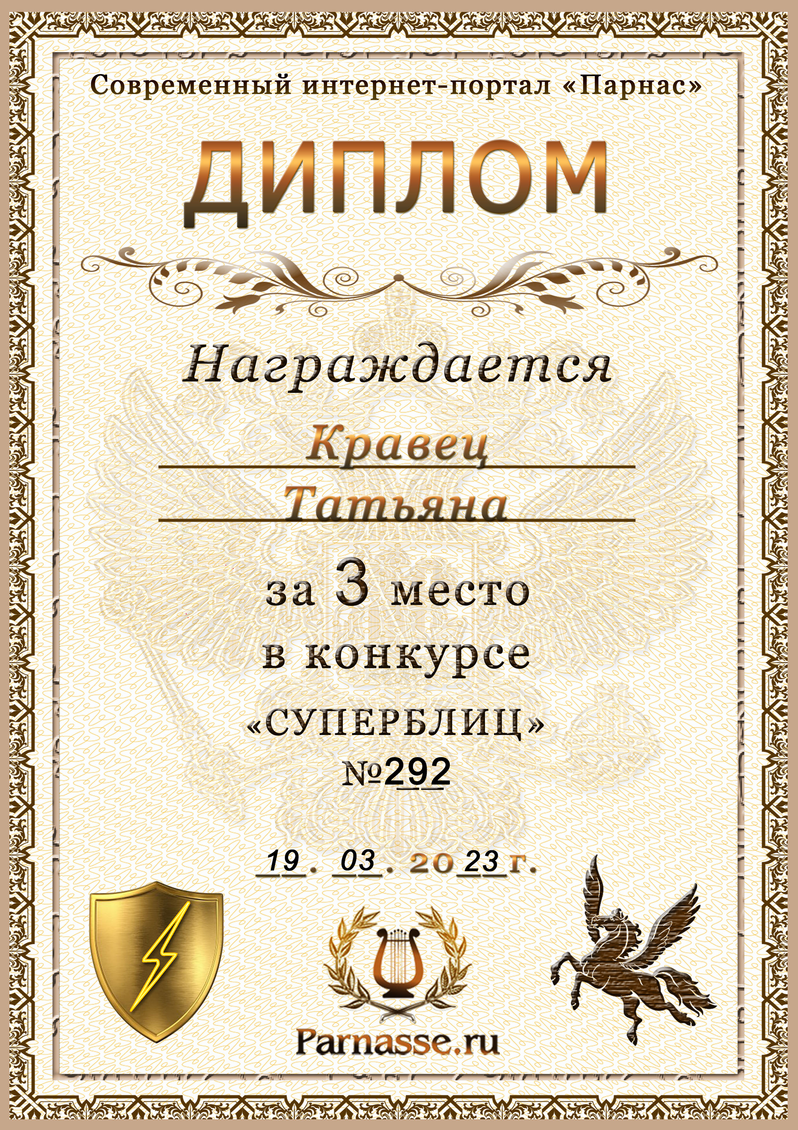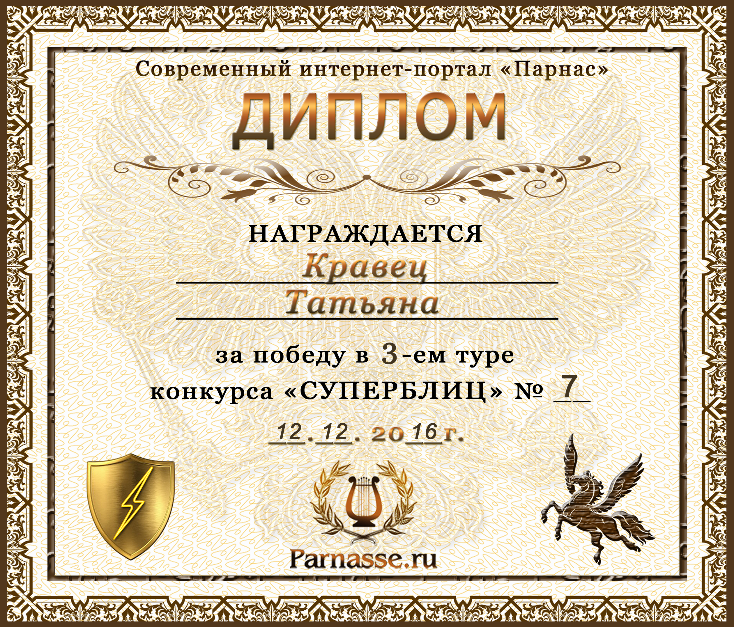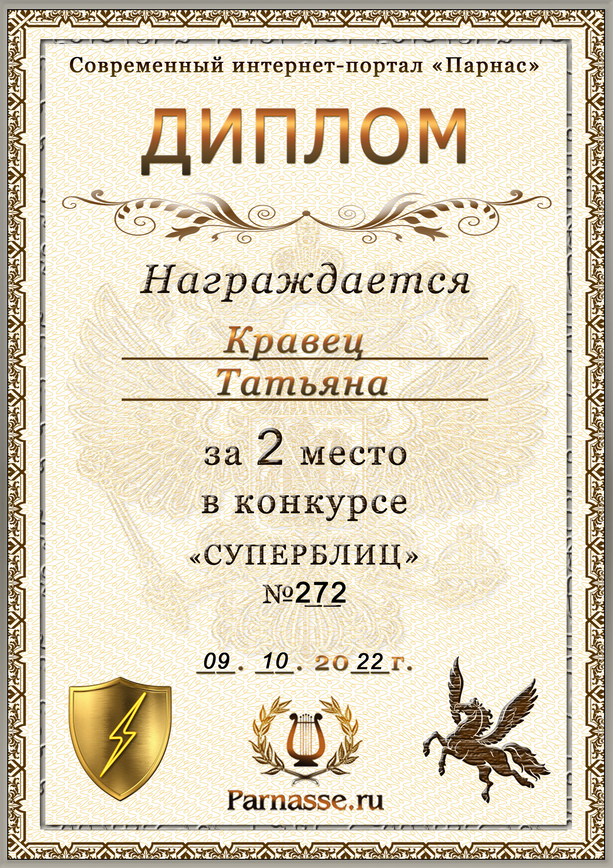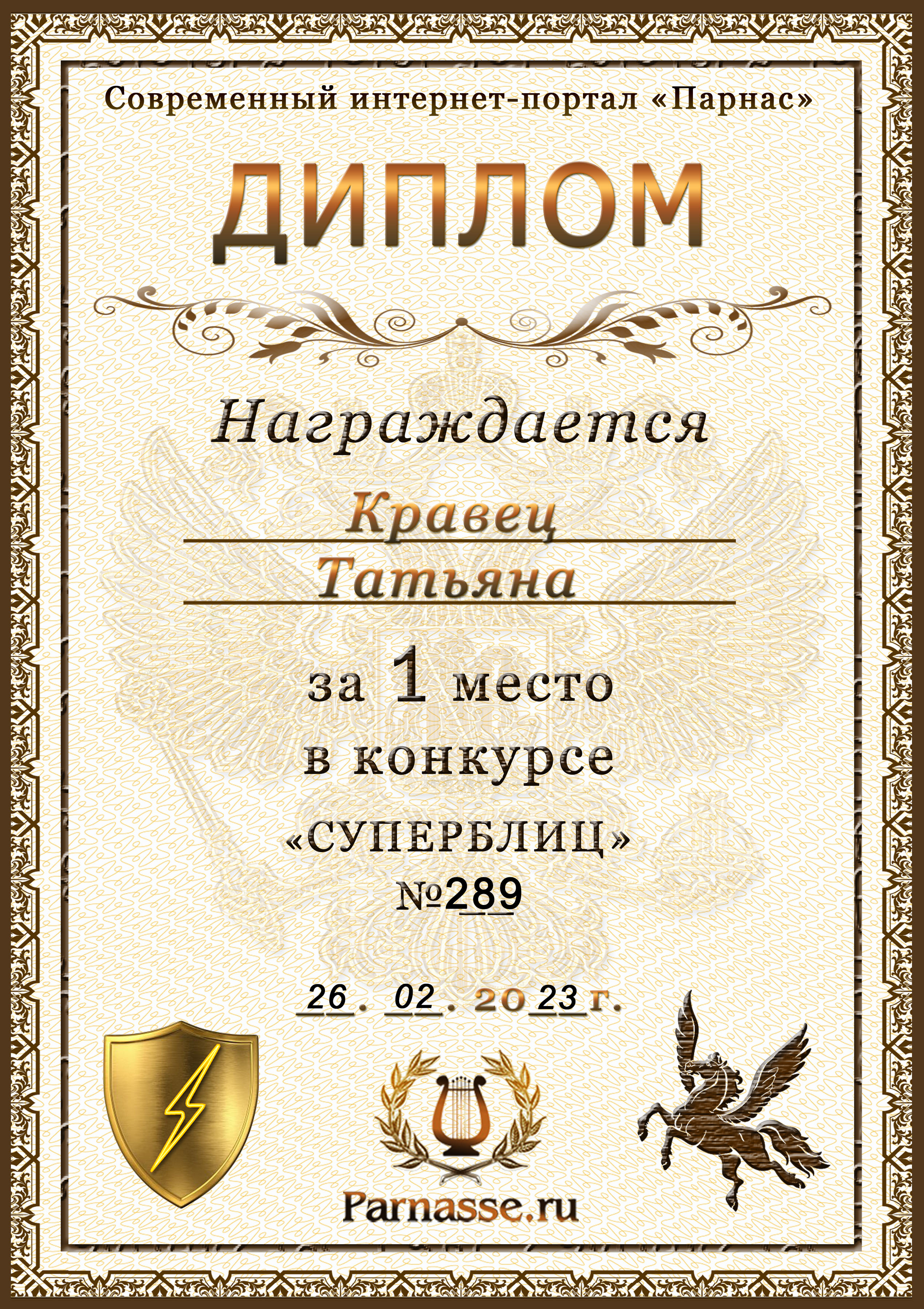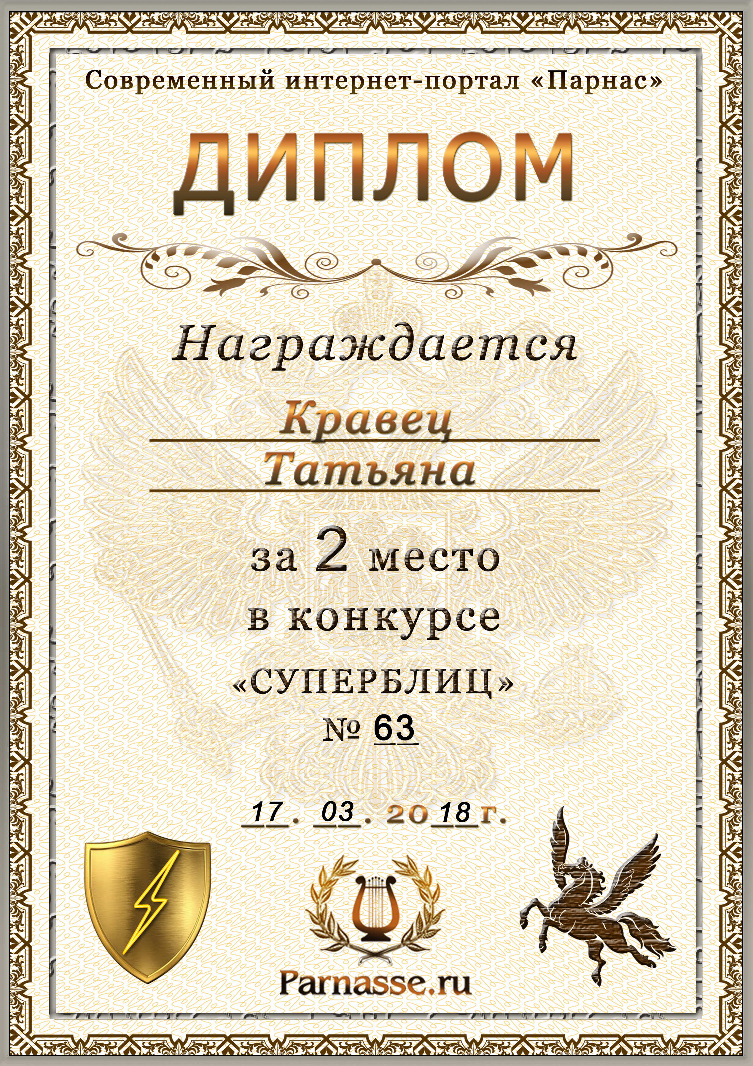 Диплом за победу во 2 туре в конкурсе СУПЕРБЛИЦА № 150! ПОЗДРАВЛЯЮ!