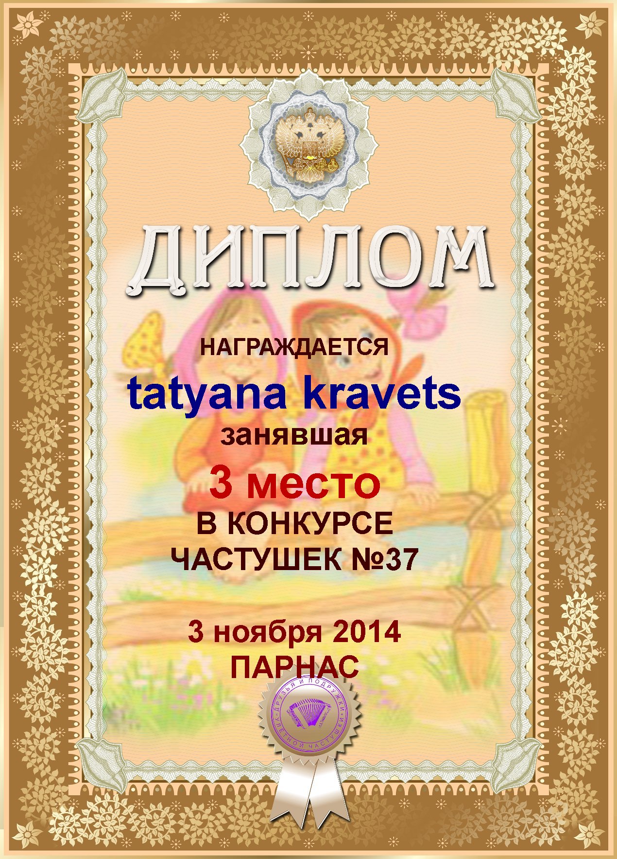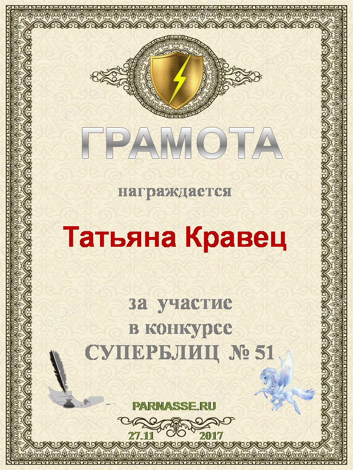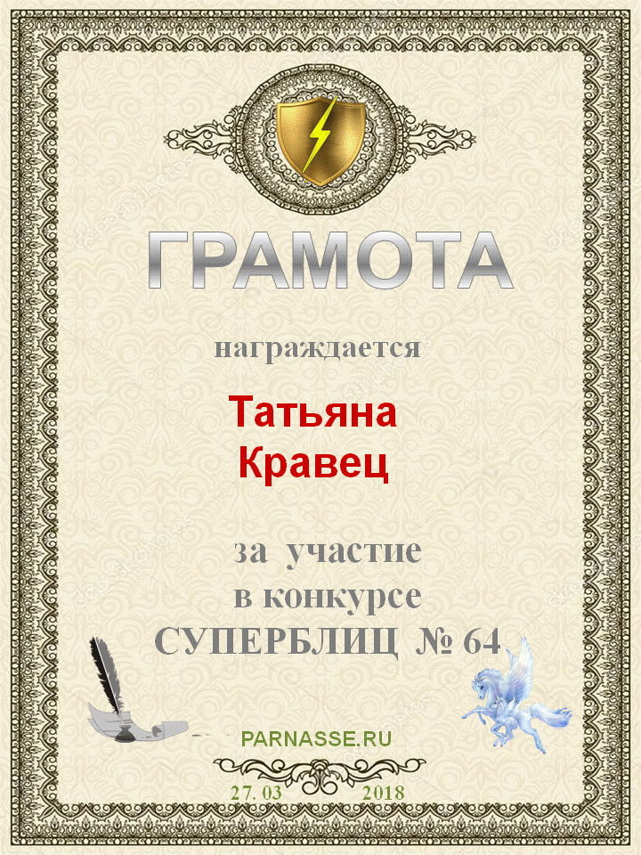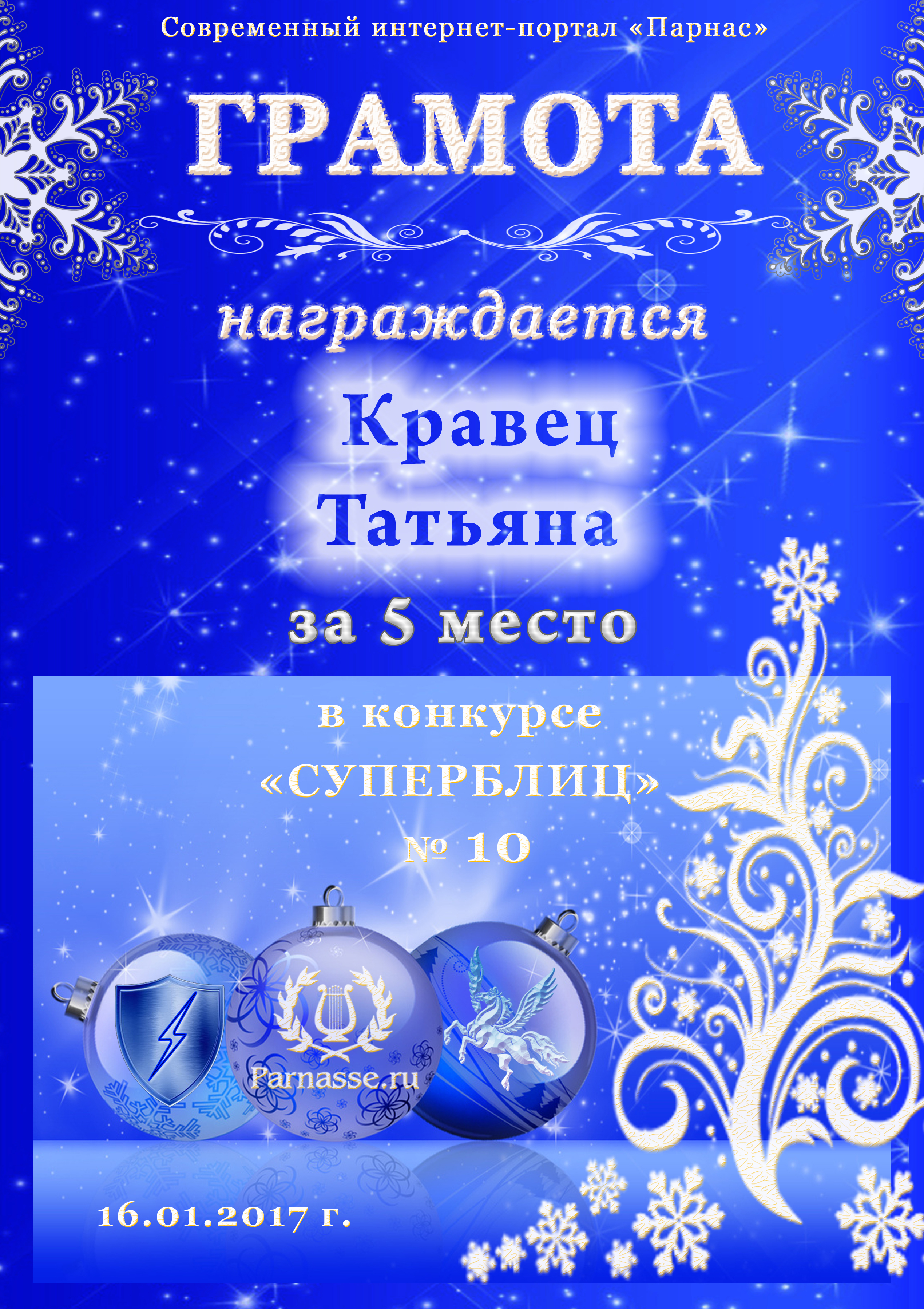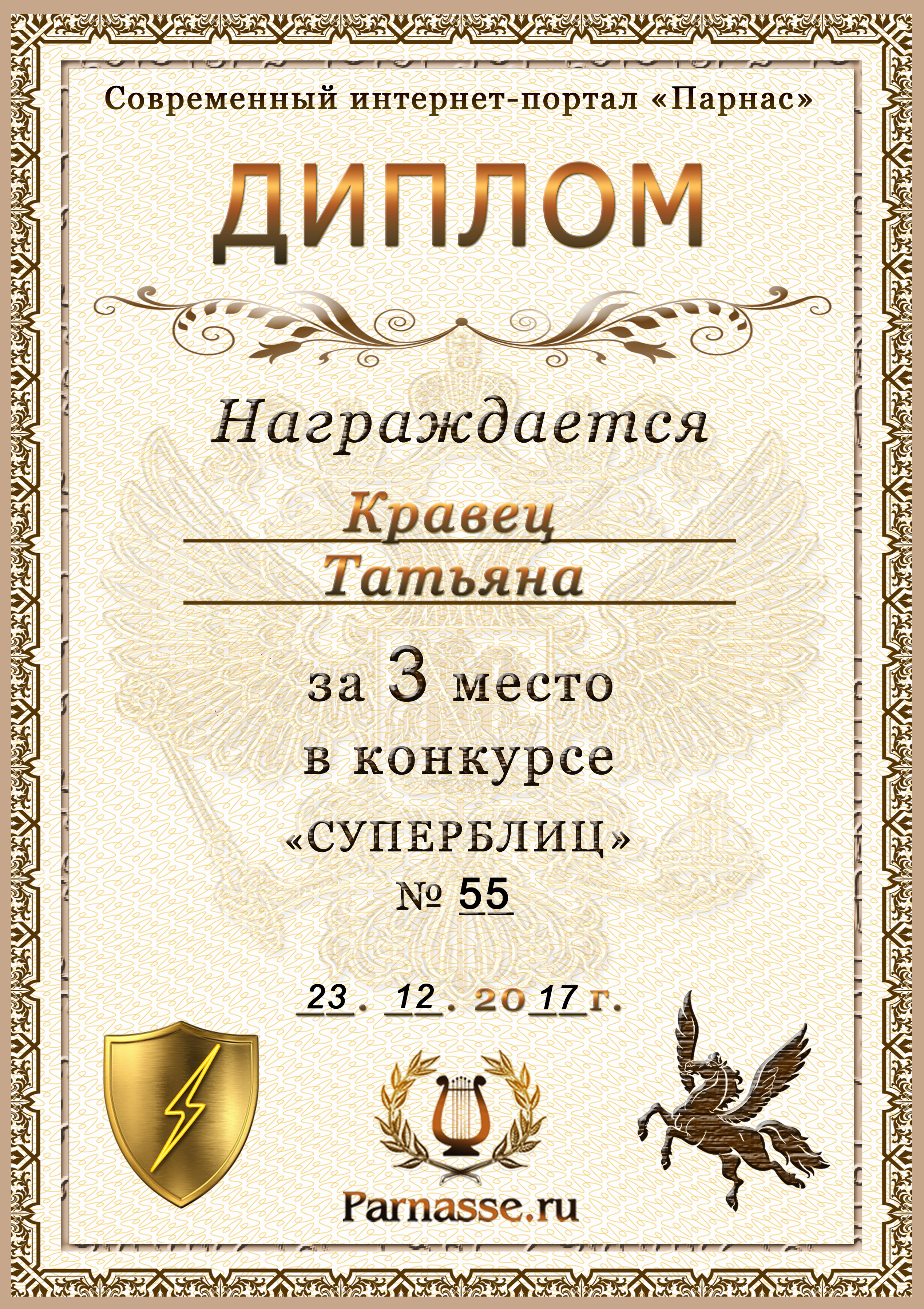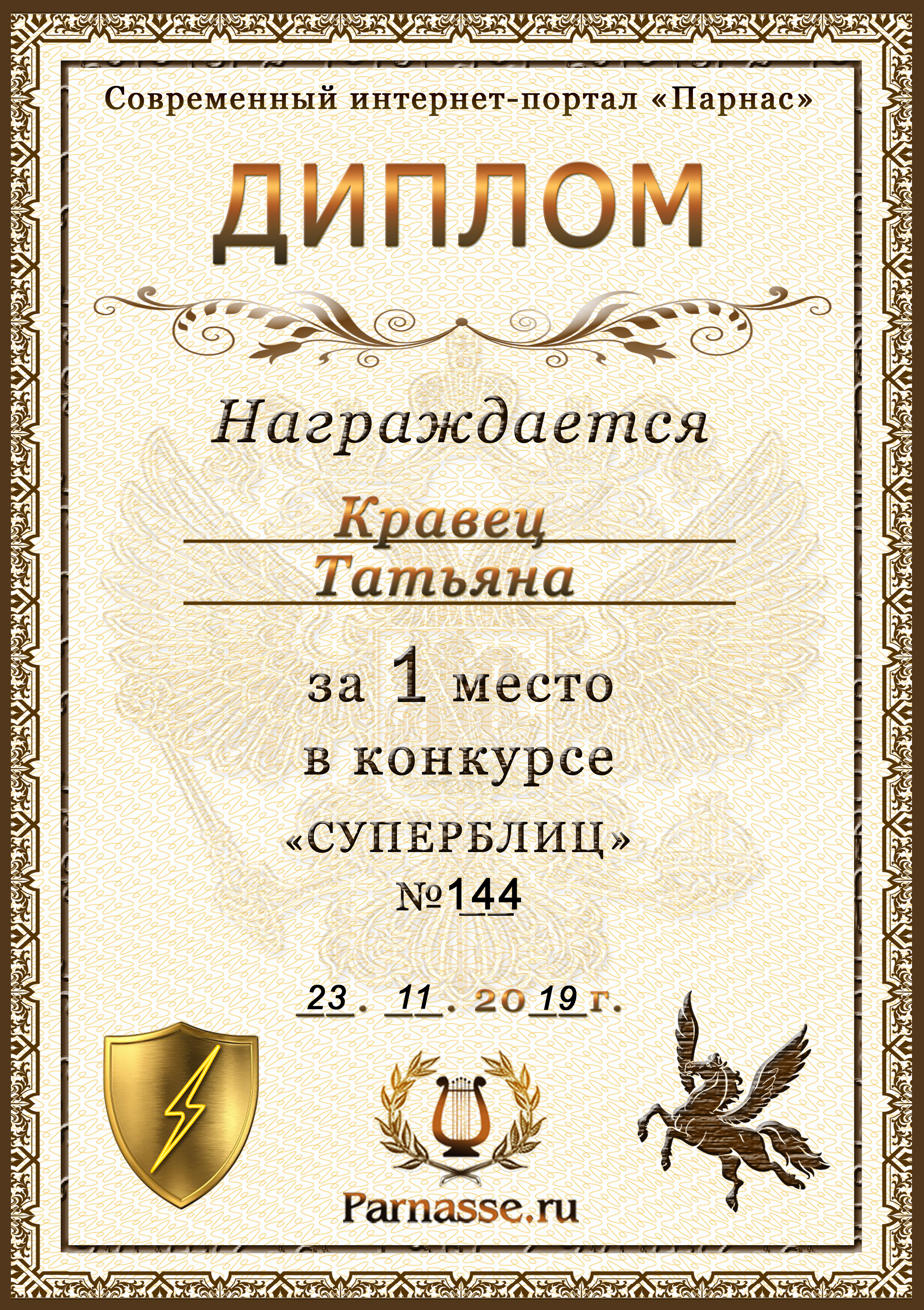 Диплом за победу во 2 туре в конкурсе СУПЕРБЛИЦА № 150! ПОЗДРАВЛЯЮ!