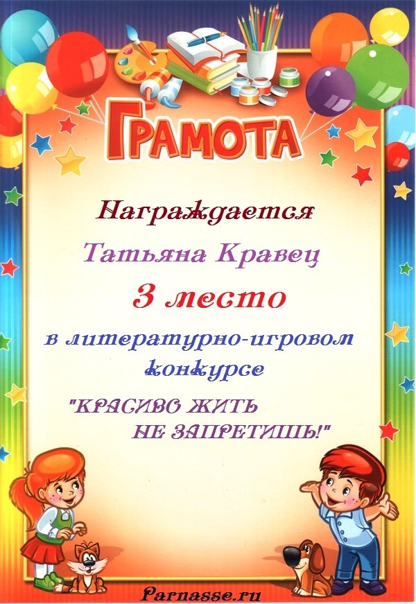 За победу в игровом конкурсе:"Красиво жить не запретишь".