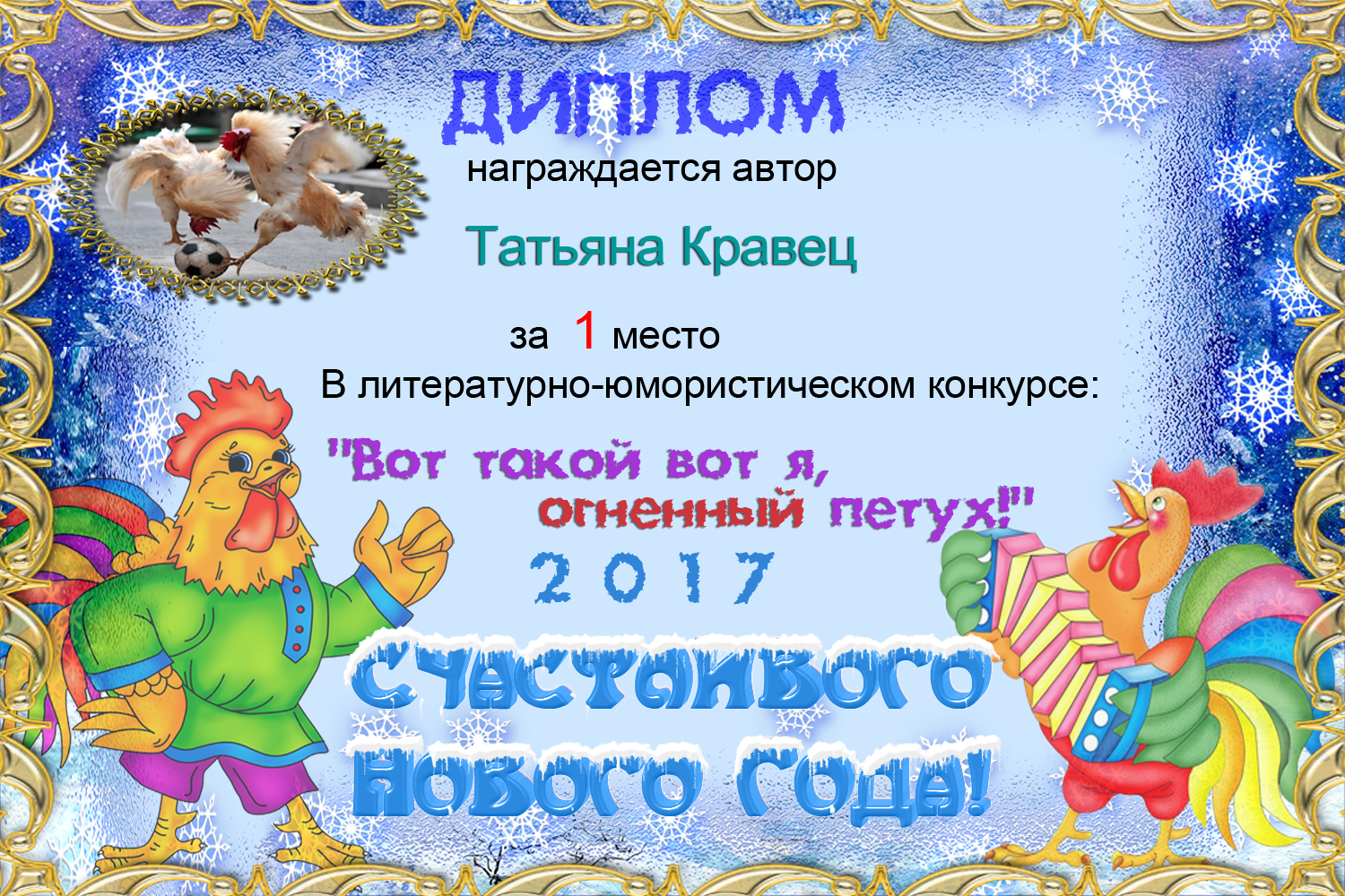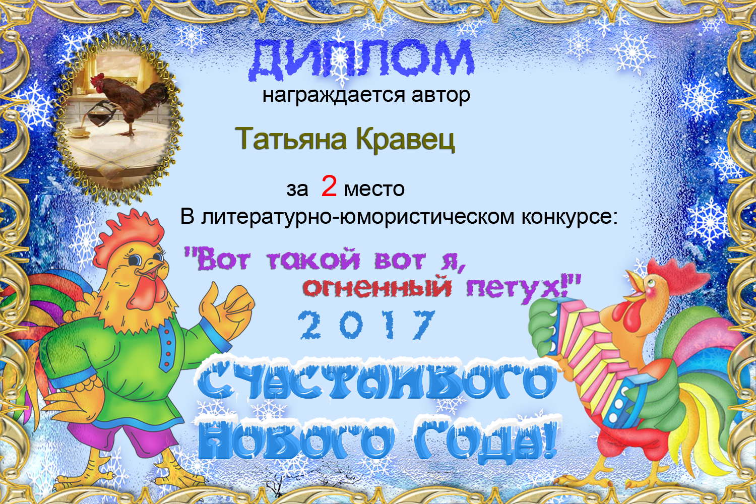 За победу в конкурсе на тему:"Вот такой вот я, огненный петух!"