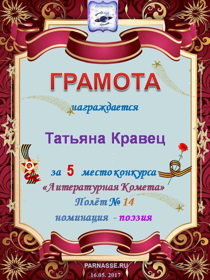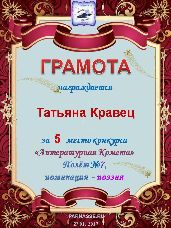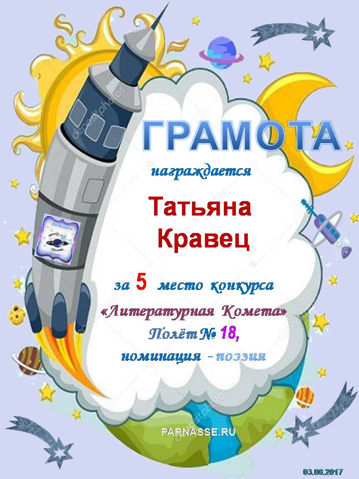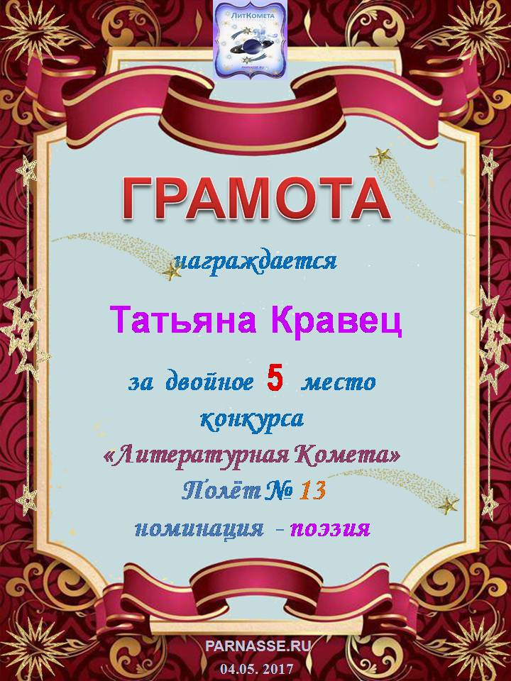 Грамота за 5 место "ЛитКомета" Полёт № 13 - поэзия