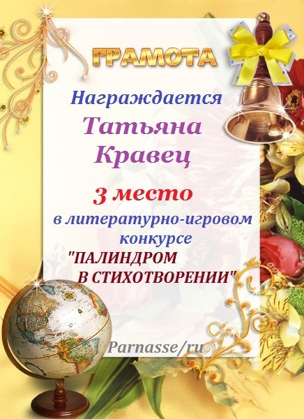 Победителю игрового конкурса:"Палиндром в стихотворении".