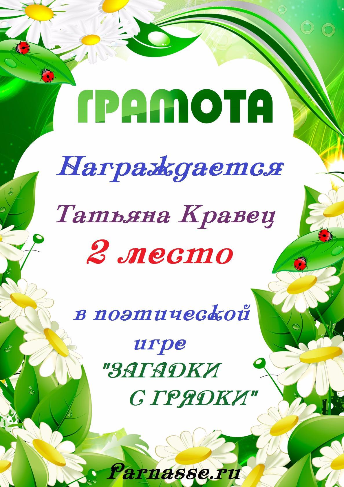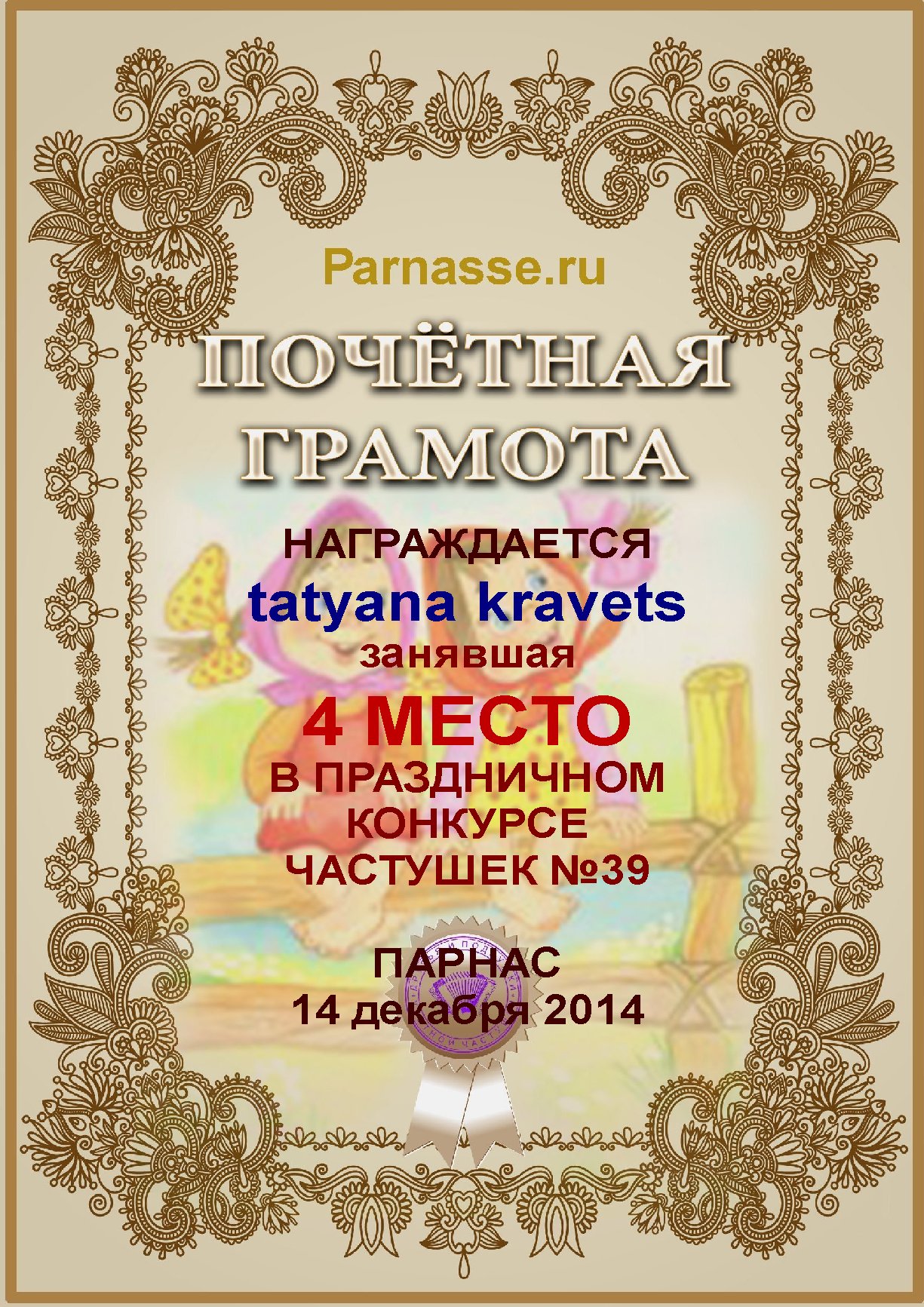 Грамота за 4 место в 116 конкурсе АКРОСТИХА (Альтернатива)! ПОЗДРАВЛЯЮ!