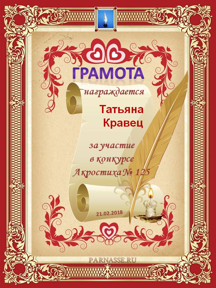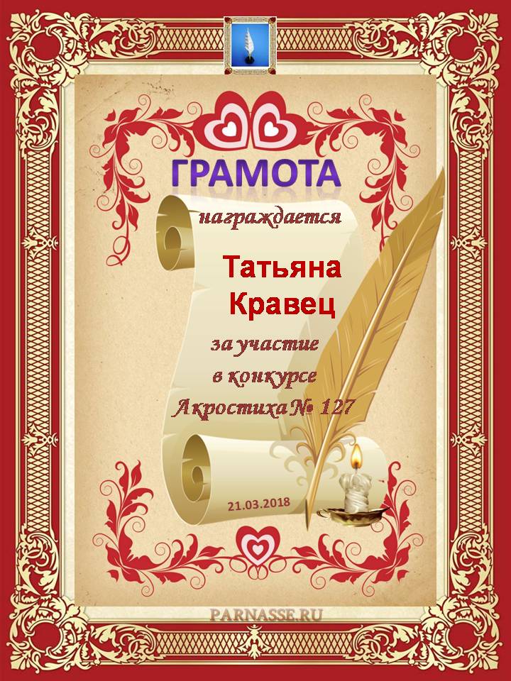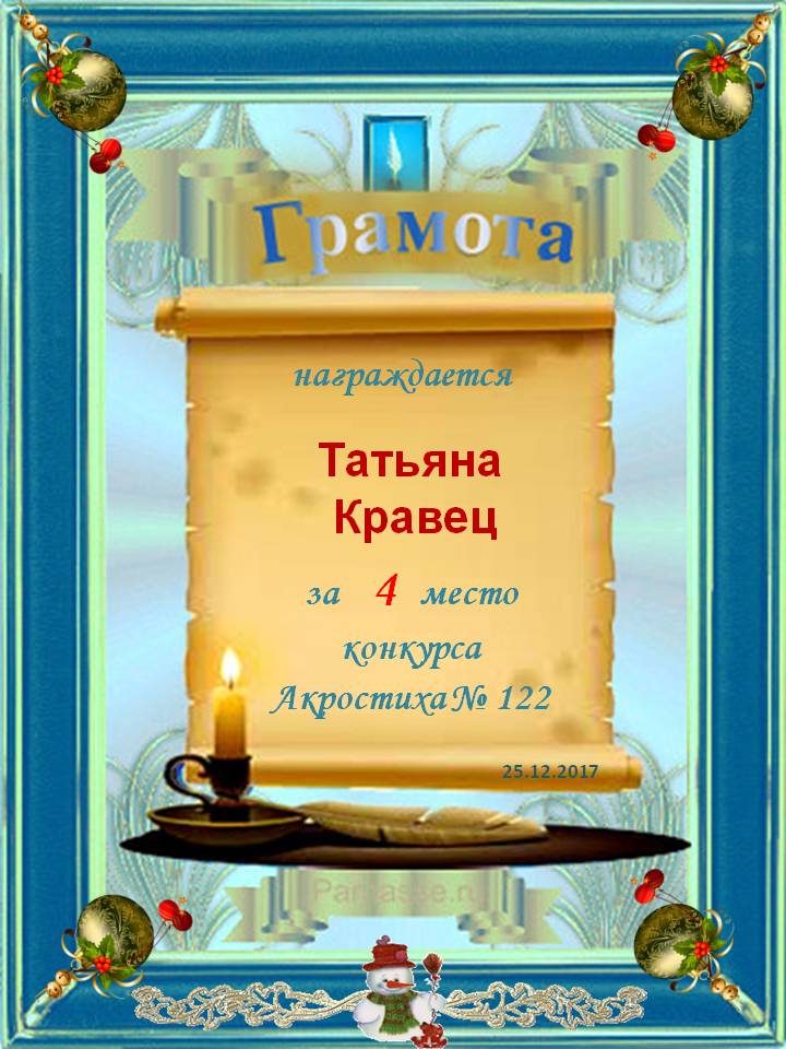 Грамота за 4 место в 124 конкурсе АКРОСТИХА (Альтернатива)! ПОЗДРАВЛЯЮ!