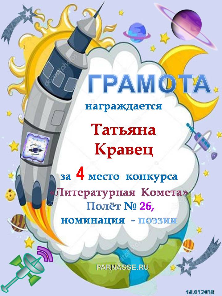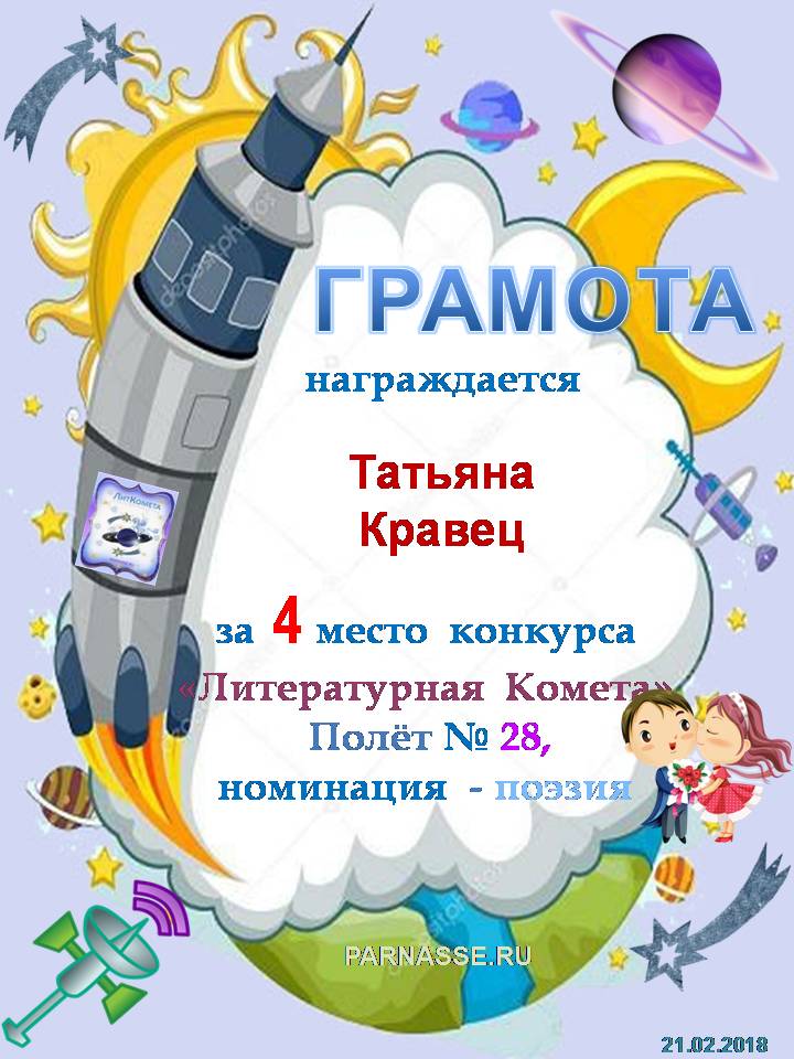Поздравляю с 4 местом в конкурсе "ЛитКомета" Полёт № 28 - номинация Поэзия!