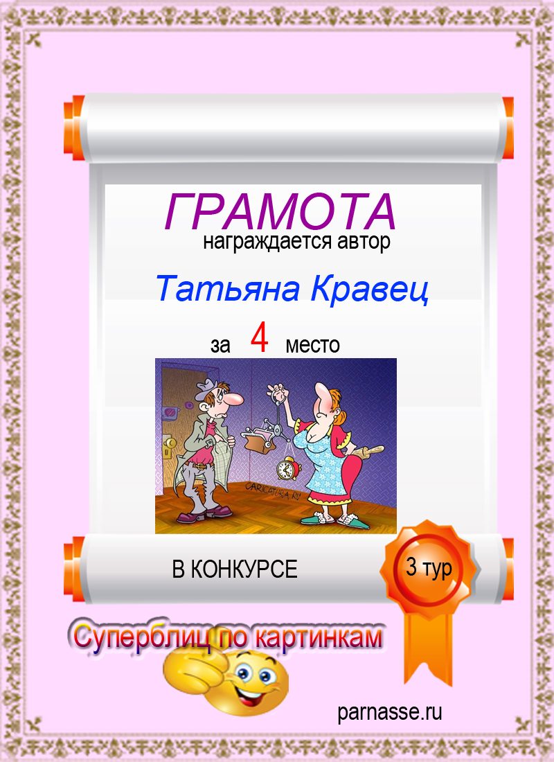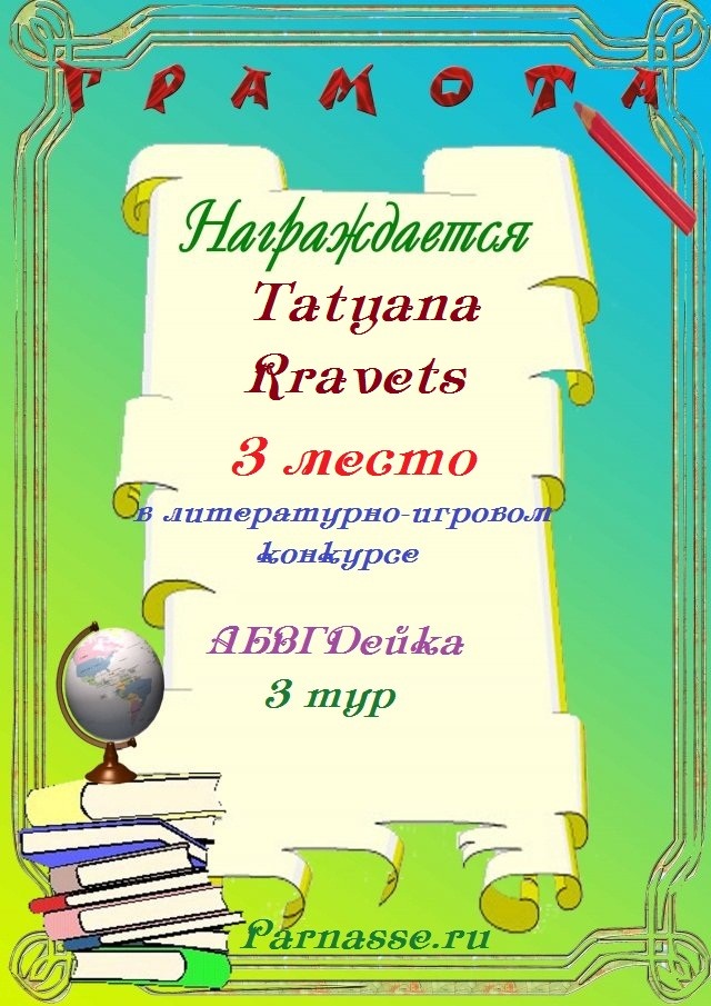 Грамота за 4 место в 123 конкурсе АКРОСТИХА (Альтернатива)! ПОЗДРАВЛЯЮ!