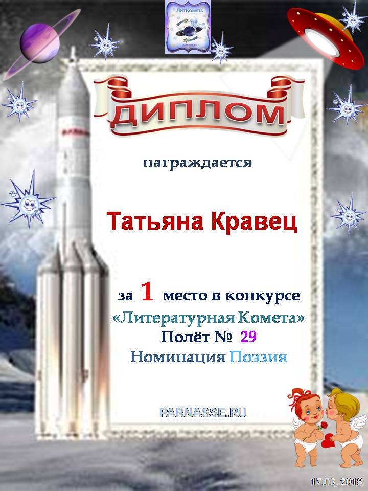 Поздравляю с 1 местом в конкурсе «ЛитКомета – Полёт № 29» - номинация Поэзия!
