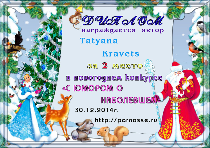 Поздравляю с победой - 2 местом в номинации Поэзия! Желаю счастья, благополучия и здоровья в наступающем году!