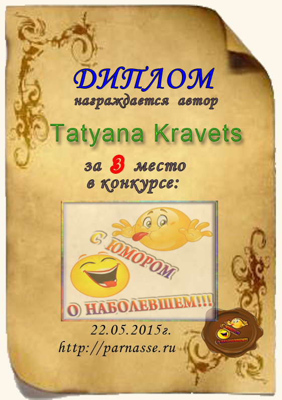 Диплом за 3 место в конкурсе "С юмором. о наболевшем № 5!