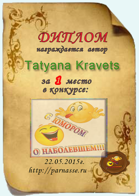 Диплом за 1 место в конкурсе " С юмором. о наболевшем"