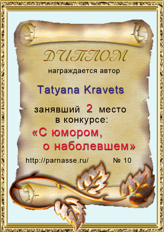 Диплом за 2 место в конкурсе " С юмором. о наболевшем"