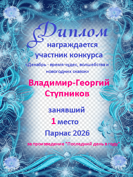 Кубок Первое место по итогам конкурса - триада "Декабрь - пора чудес и волшебства"(проза)