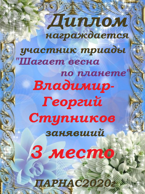 Третье место по итогам конкурса - триада "Февраль - финальный аккорд зимы"