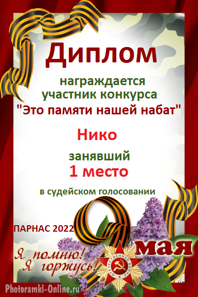 Второе место по итогам конкурса "Твой образ хранит моё сердце"