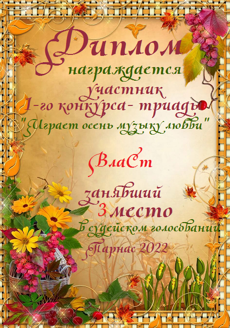 Второе место в судейском голосовании по итогам третьего конкурса - триада "А зима уже не за горами"