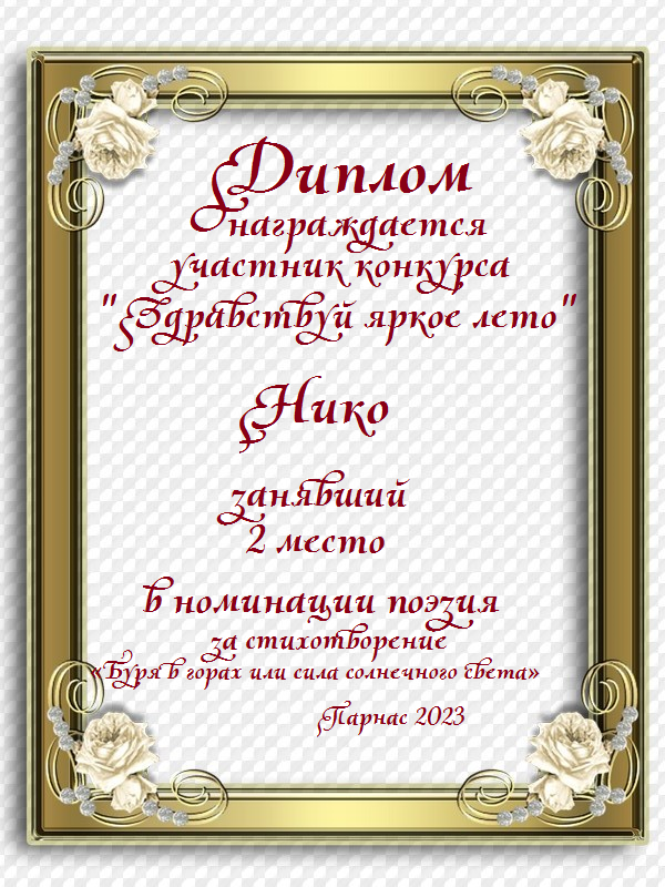 Второе место по итогам конкурса "А я стану душой твоей"