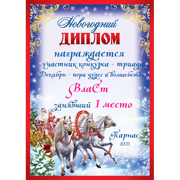 Первое место по итогам конкурса - триада "Декабрь - пора чудес и волшебства"