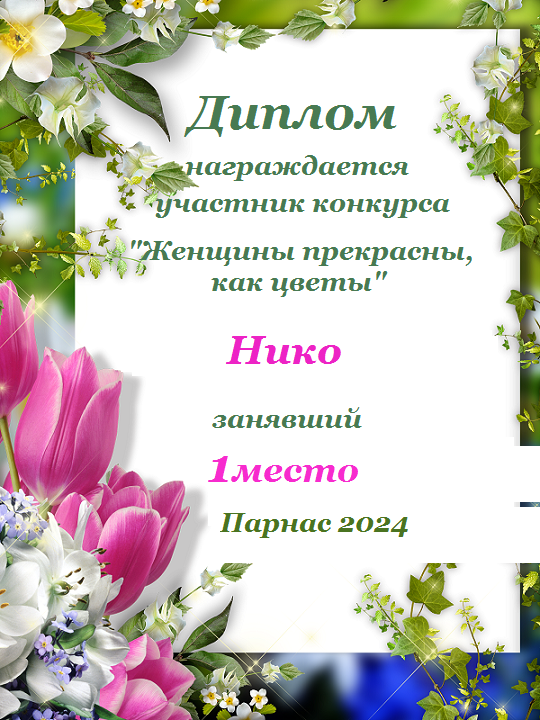 Первое место по решению Администрации и Главного судьи конкурса "Женщины прекрасны, как цветы