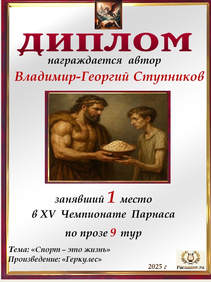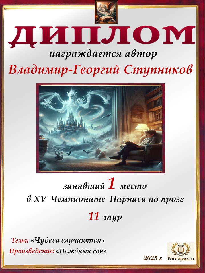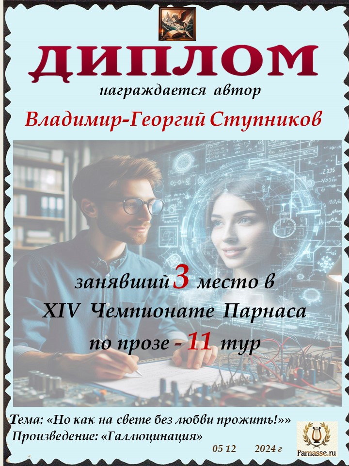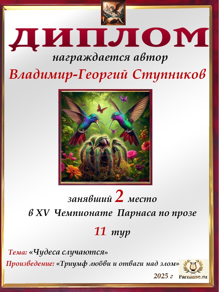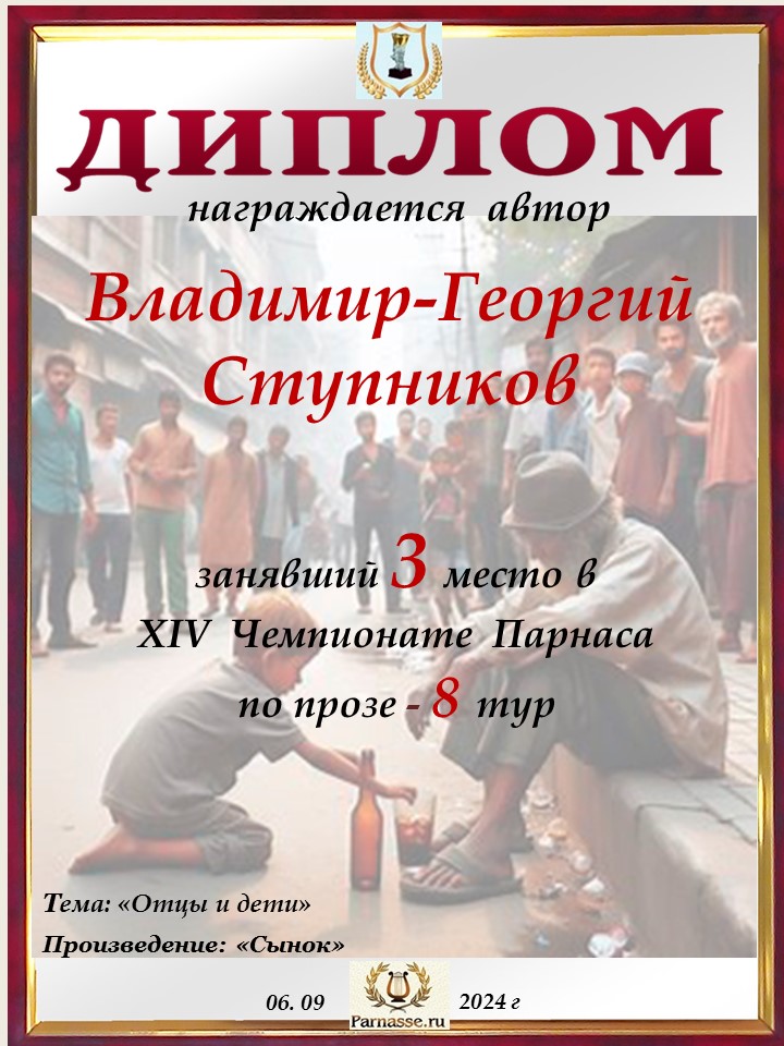 Поздравляю с занятым 3 местом в 11 туре XIV Чемпионата Парнаса по прозе!Георгий, Вы зря убрали свои работы. Они не хуже выставленных.
