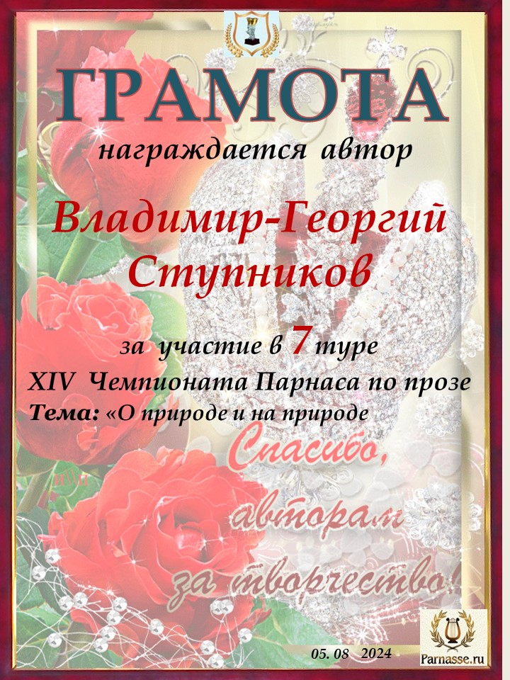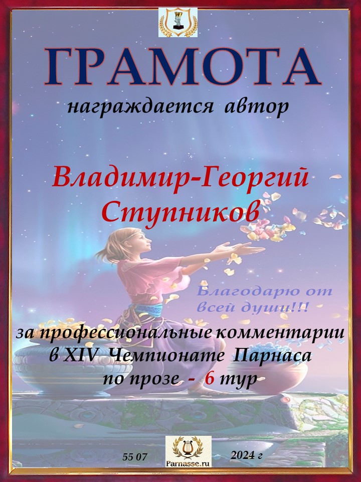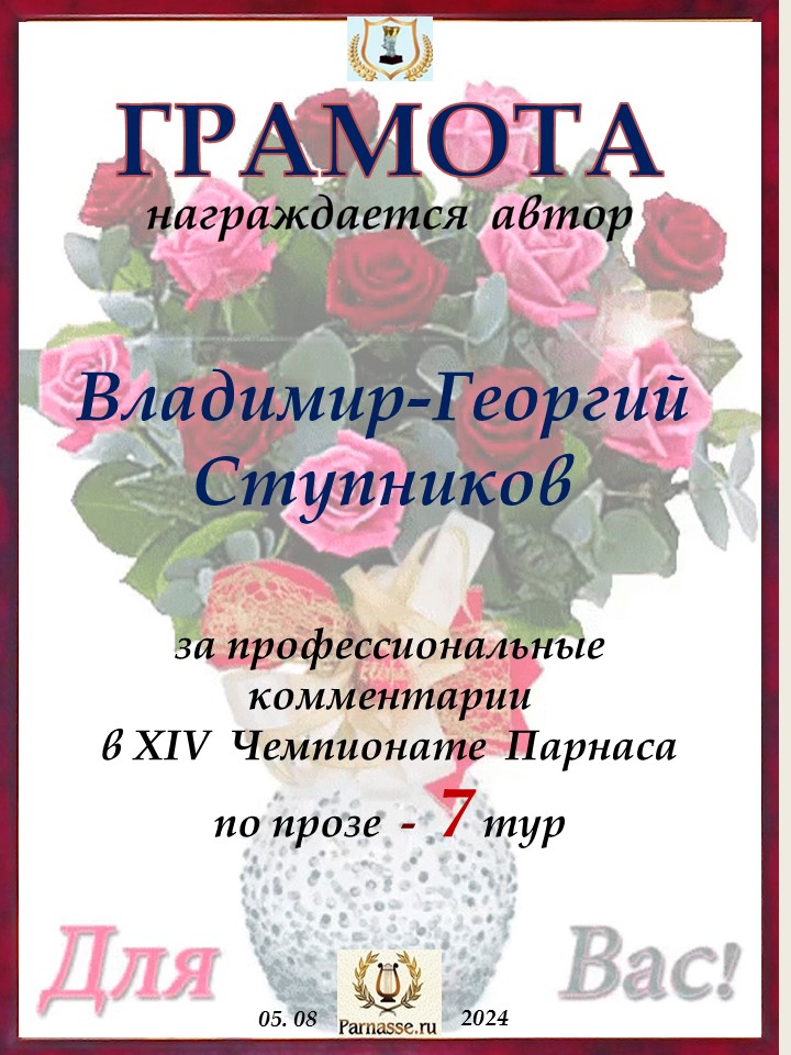 Спасибо за литературную поддержку конкурса и творческий вклад в 7 тур XIV Чемпионате Парнаса по прозе!