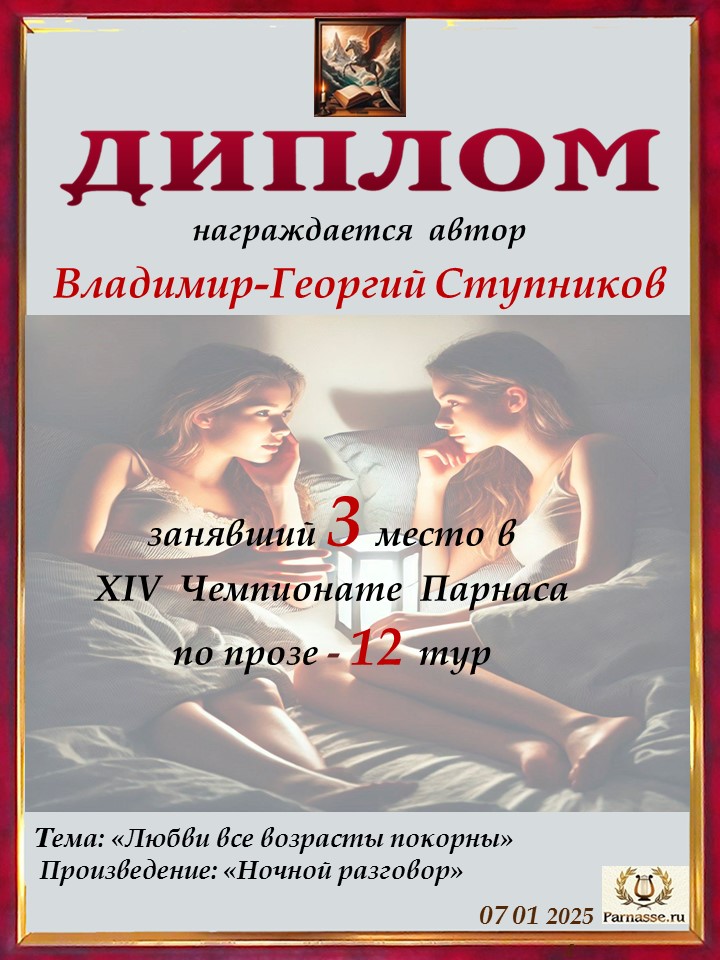 Поздравляю с занятым 3 местом в 12 туре XIV Чемпионата Парнаса по прозе!