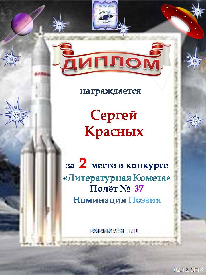 За 2 место в конкурсе "Литературная Комета - Полёт № 37" - поэзия