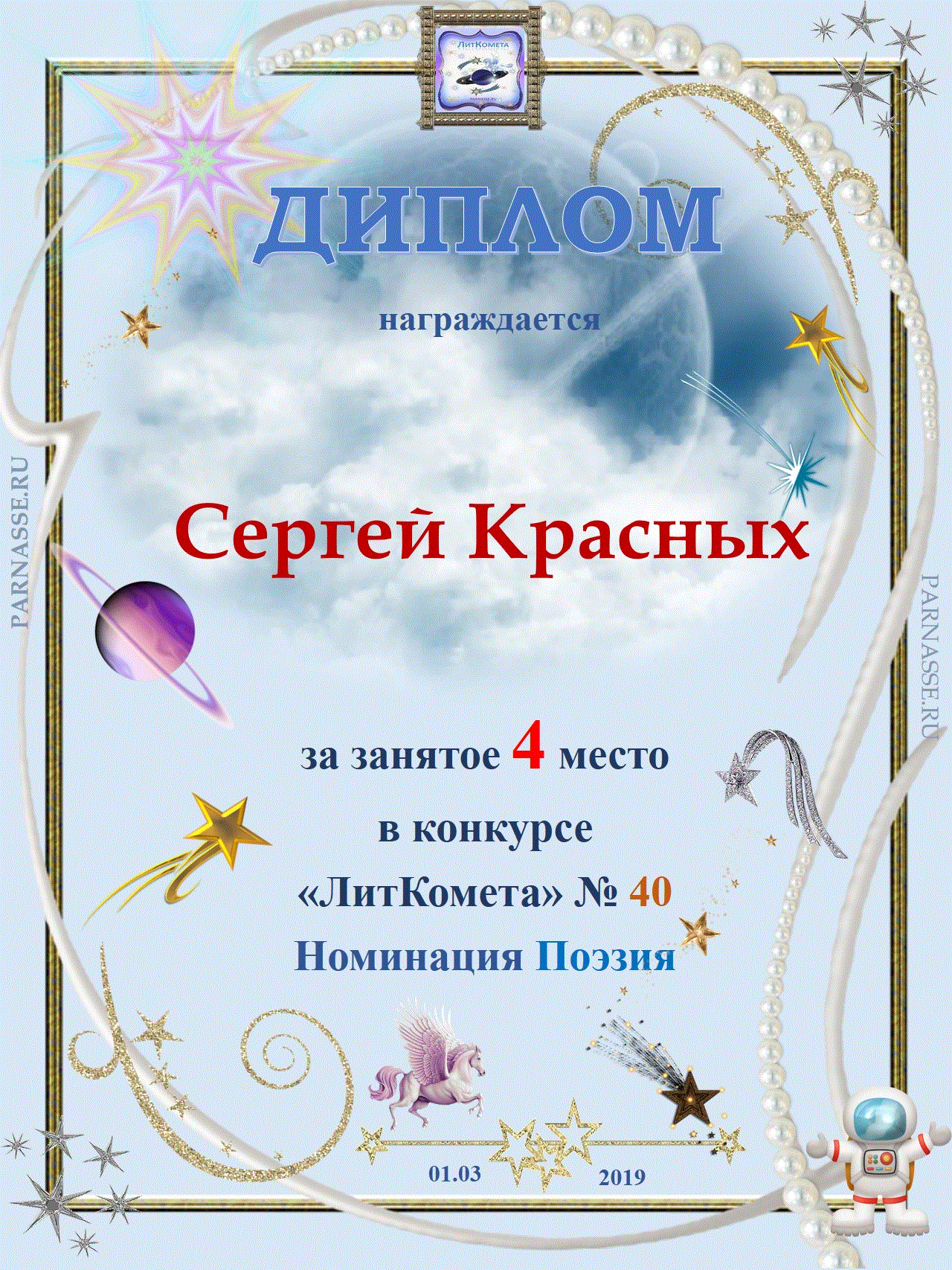 Грамота за 4 место "ЛитКомета" Полёт № 6 - поэзия